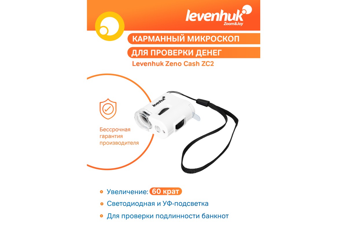 Микроскоп Levenhuk Zeno Cash ZC2 – это карманный увеличительный прибор с ультрафиолетовой и светодиодной подсветками. Он прекрасно подойдет для проверки подлинности денежных знаков в профессиональной деятельности и в быту. Портативный прибор имеет легкий и компактный пластиковый корпус – его удобно брать с собой в заграничные командировки и на деловые встречи.