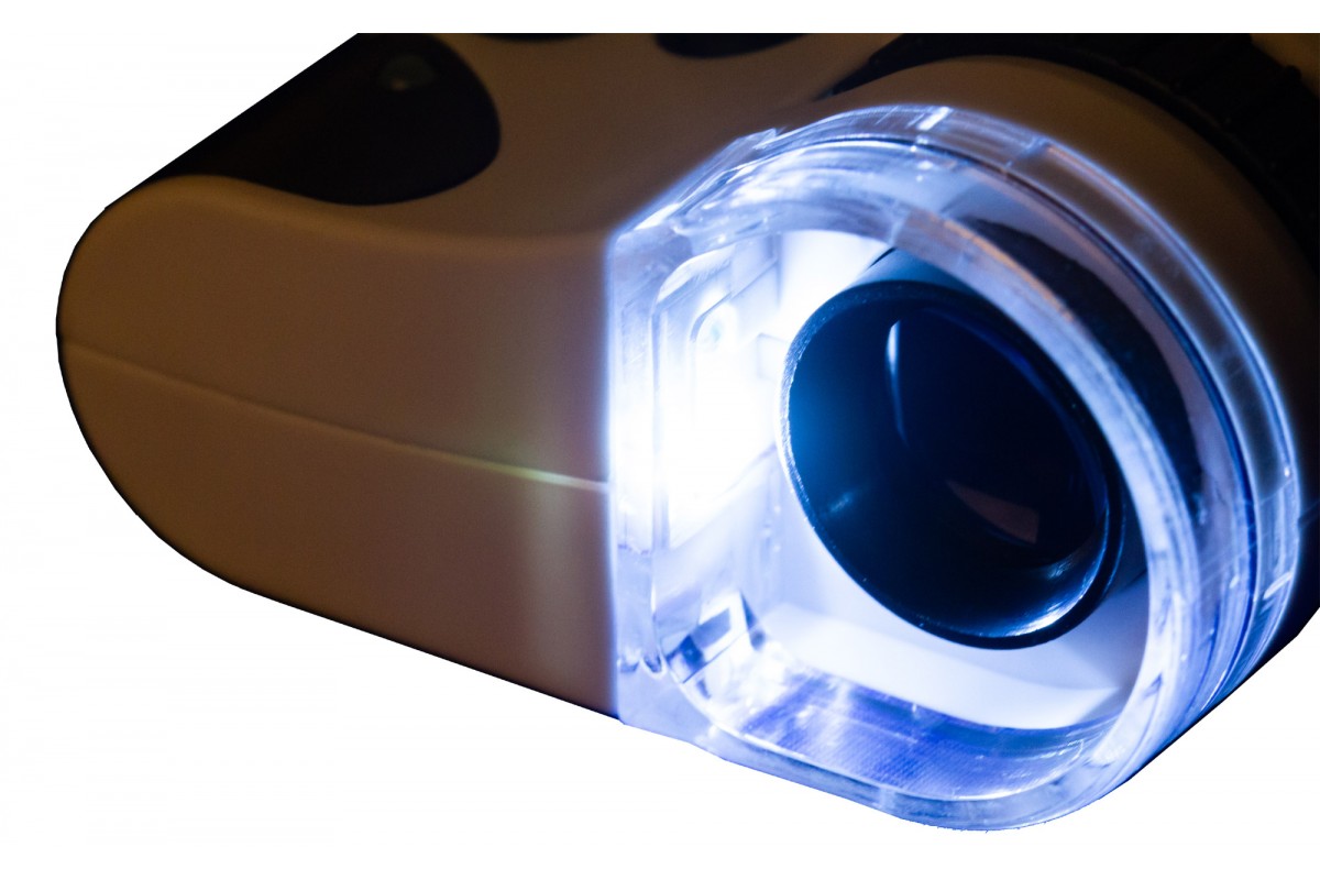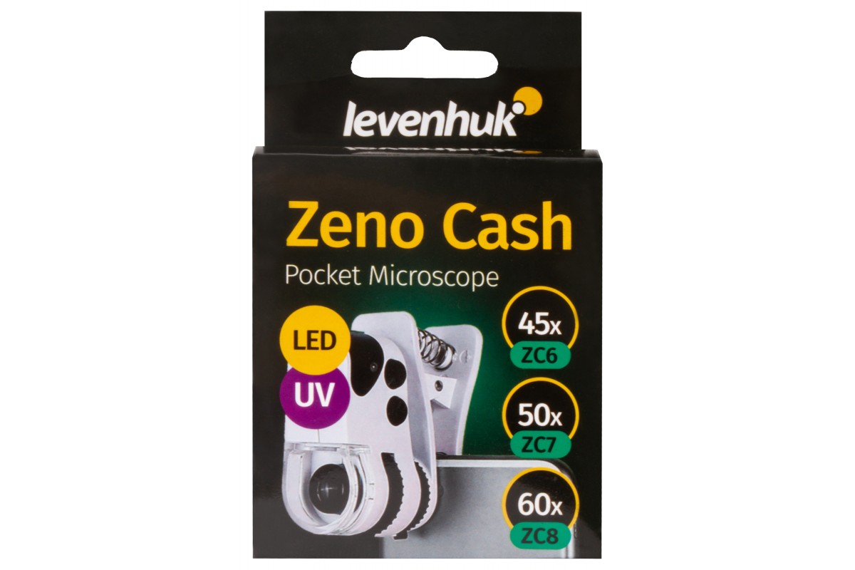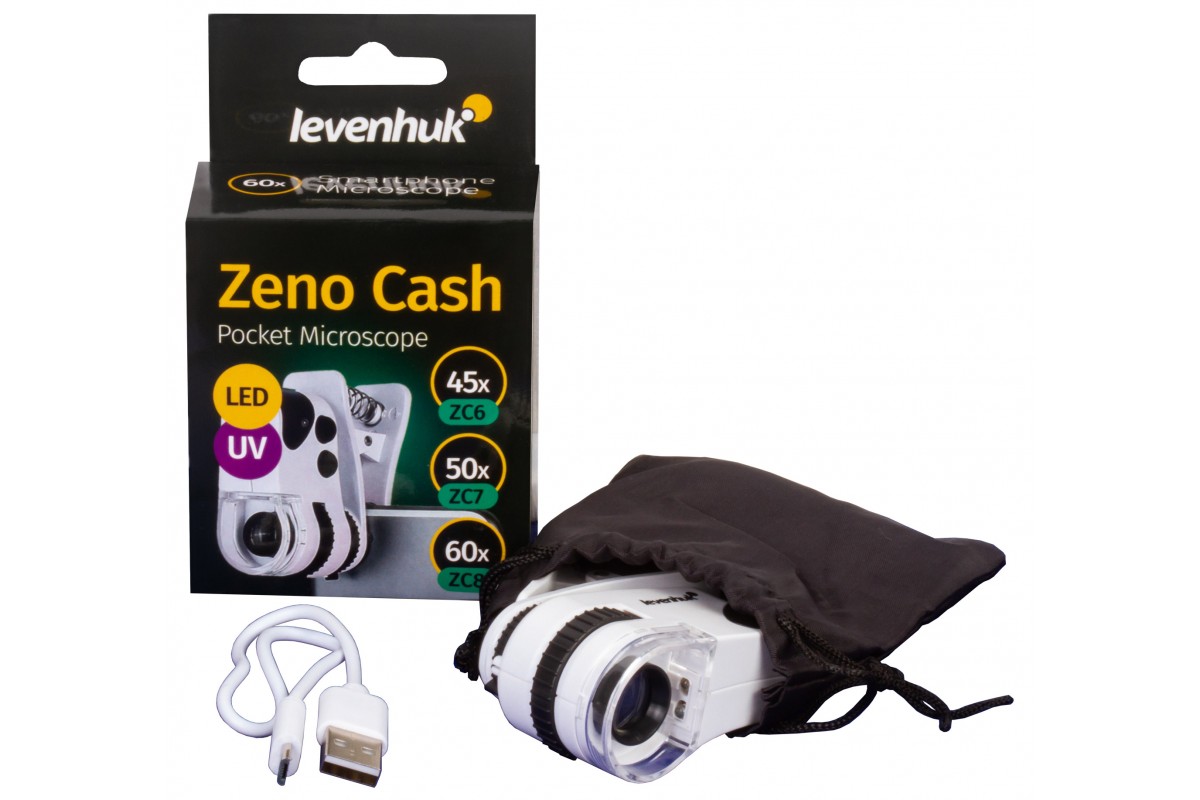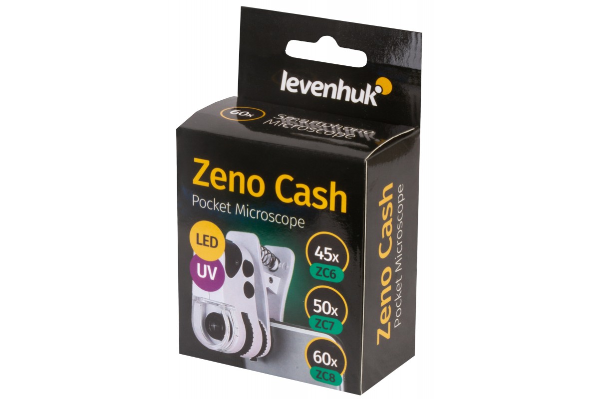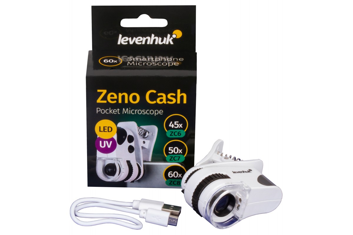 Levenhuk Zeno Cash ZC7 – портативный микроскоп с ультрафиолетовой подсветкой для проверки банкнот. С его помощью можно быстро и точно выявить фальшивую купюру, рассмотрев ее под увеличением в UV-лучах. Такой прибор будет особенно полезен при расчетах в иностранной валюте. Благодаря легкому корпусу и возможности работать без подзарядки 8–10 часов микроскоп можно без труда захватить с собой в кармане и на деловую встречу, и в магазин, и в командировку.