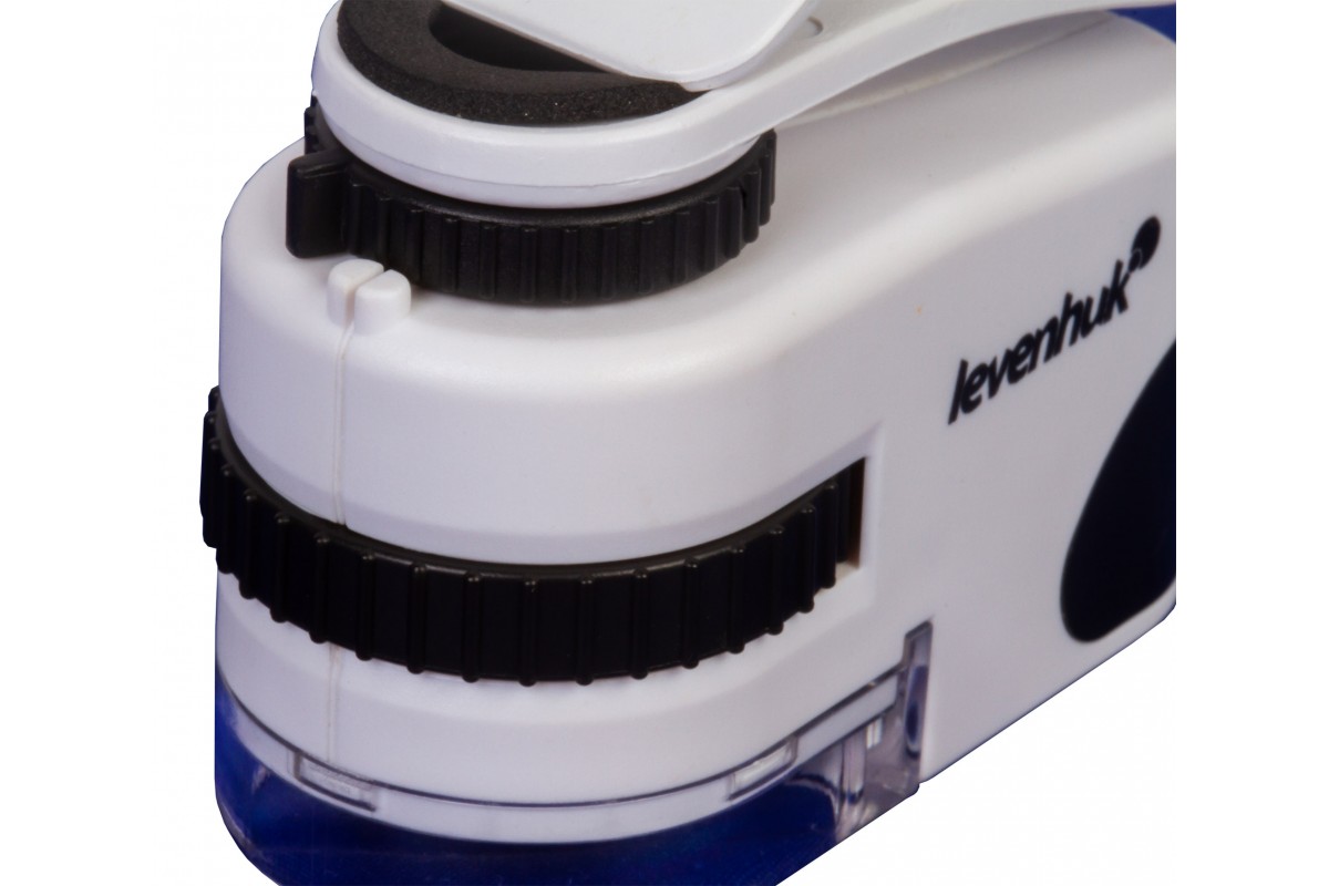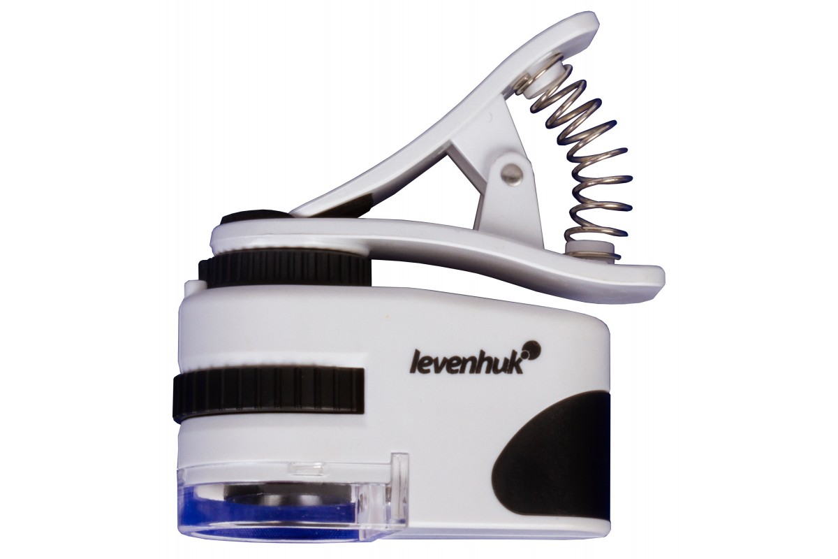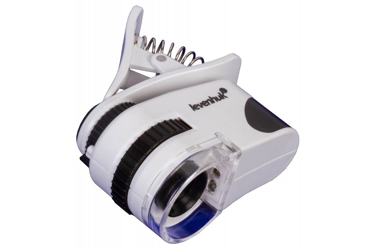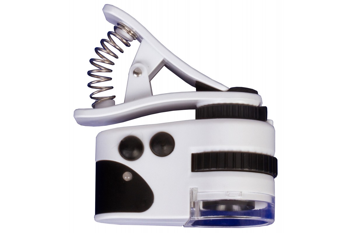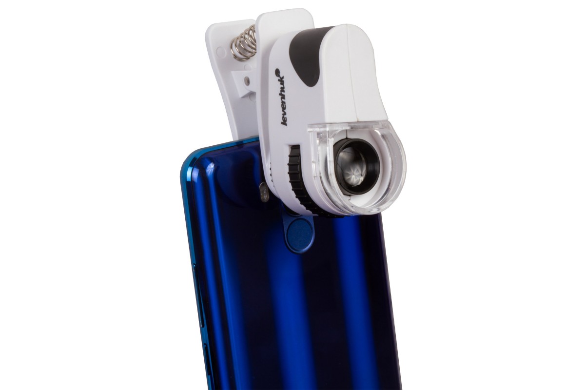 Оптика микроскопа Levenhuk Zeno Cash ZC7 приближает изображение в 50 раз. Благодаря наличию не только ультрафиолетового, но и обычного светодиода можно использовать прибор как мощную лупу для детального рассмотрения разных объектов. В конструкции предусмотрено крепление на телефон – фиксировать увеличенное изображение можно с помощью камеры мобильного устройства.