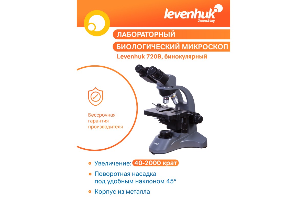 Микроскоп Levenhuk 720B – бинокулярный микроскоп с увеличением от 40х до 2000х. С его помощью можно изучать любые прозрачные микропрепараты в проходящем свете. Микроскоп станет отличным инструментом для профессиональной деятельности, учебы или научного хобби. Его можно разместить в домашней лаборатории, школьном кабинете биологии, студенческой аудитории или в стенах научно-исследовательского института. Он везде найдет применение.