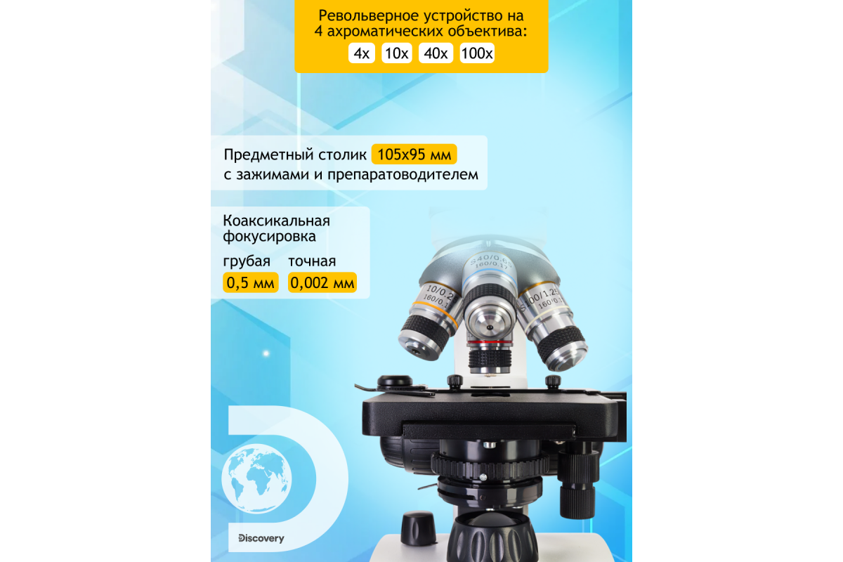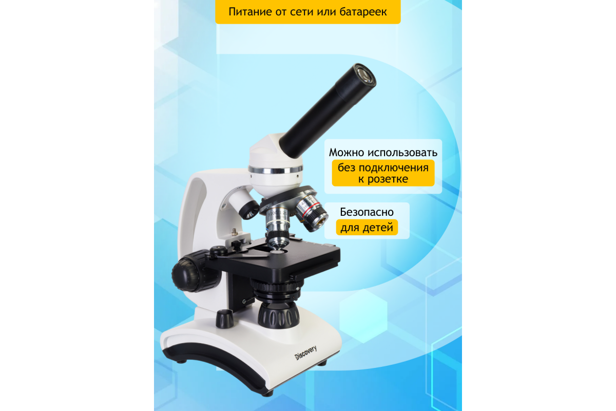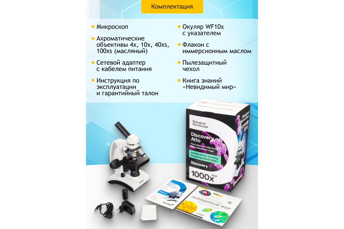 С микроскопом Levenhuk Discovery Atto Polar можно проводить микроисследования разного уровня сложности: самые простые в рамках научного хобби, более продвинутые согласно учебной программе колледжа и даже профессиональные лабораторные. Микроскоп обладает качественной оптикой, прост в освоении и комплектуется познавательной книгой о микромире, с которой проще сделать первые шаги в науку.