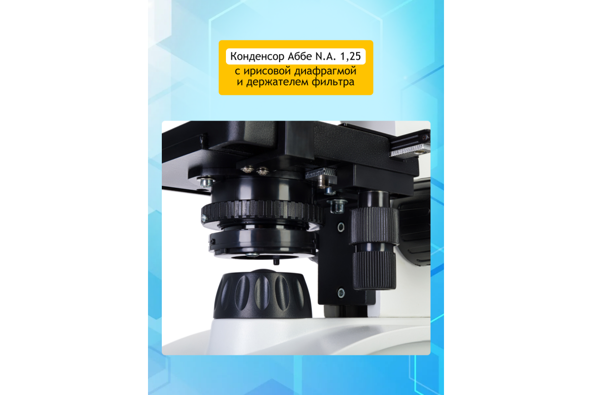 - КонденсорАббе N.A. 1,25 с ирисовой диафрагмой и держателем фильтра