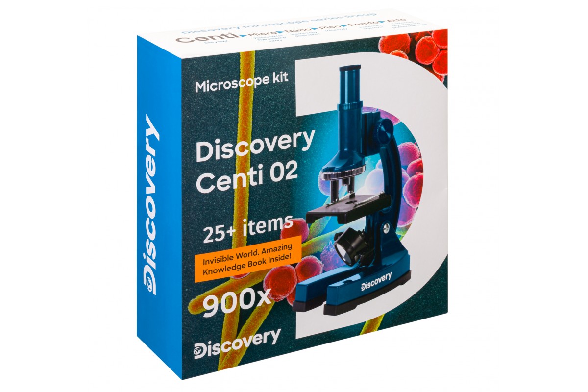 Микроскоп Levenhuk Discovery Centi 02 понравится начинающему микробиологу, который только делает первые шаги в науку. Этот простой в использовании прибор позволяет увидеть привычные вещи на большом увеличении, познакомиться с крошечными обитателями микромира, провести несложные научные опыты прямо дома. В комплекте более 25 аксессуаров, в том числе красочная книга знаний «Невидимый мир».