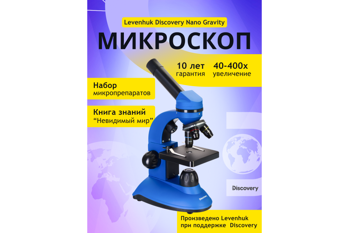 Микроскоп Levenhuk Discovery Nano Gravity предназначен для начального уровня исследований готовых микропрепаратов и самостоятельно изготовленных срезов. Можно рассматривать прозрачные, непрозрачные и полупрозрачные образцы на увеличении от 40 до 400 крат. Наблюдения ведутся в светлом поле. Микроскоп оптимально подходит для начинающих пользователей, отличается простым управлением и имеет качественную оптику. В комплектацию также включена познавательная книга о микромире.