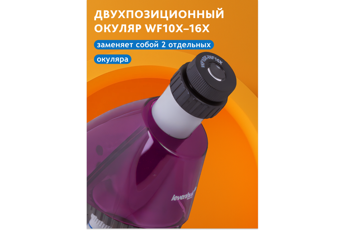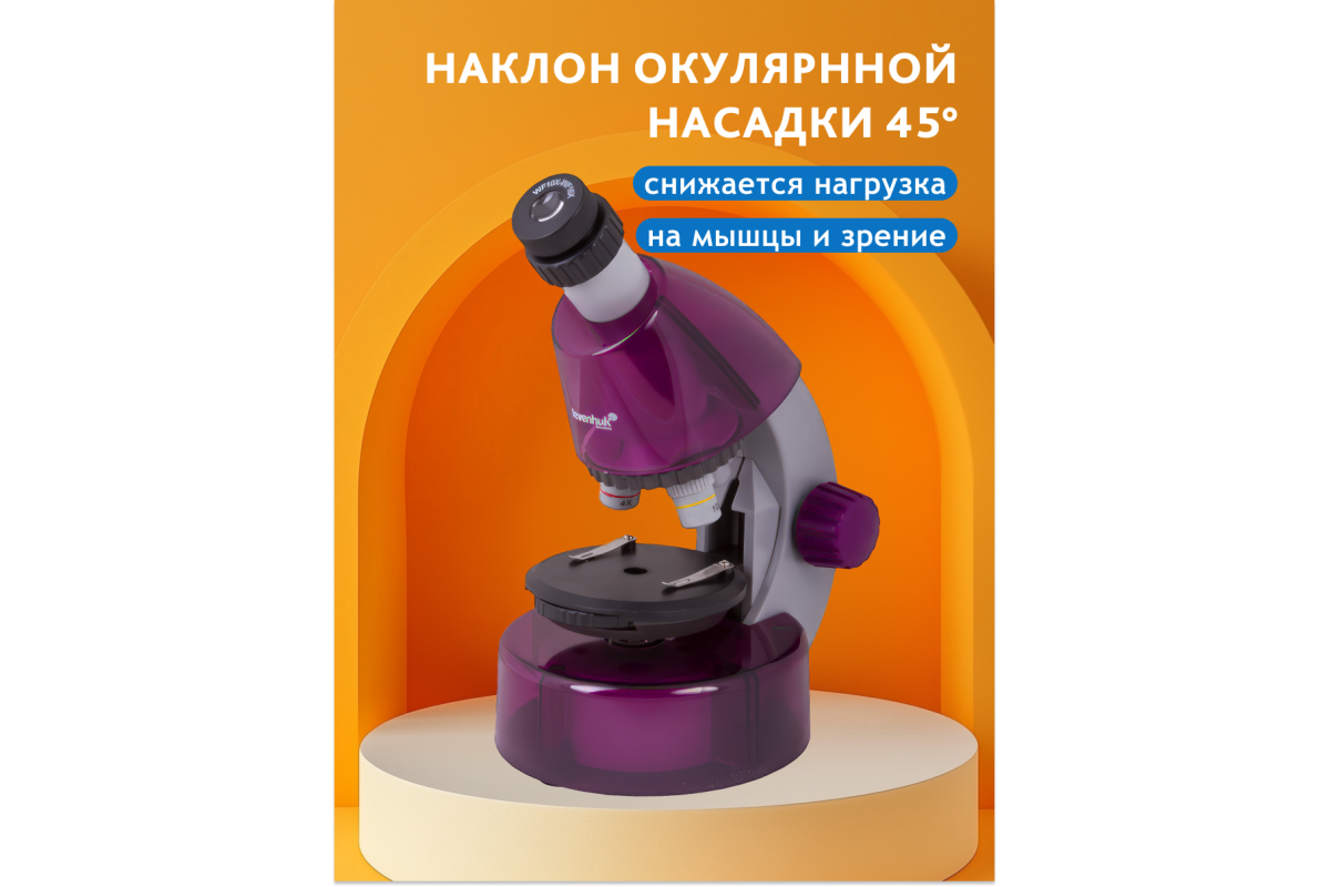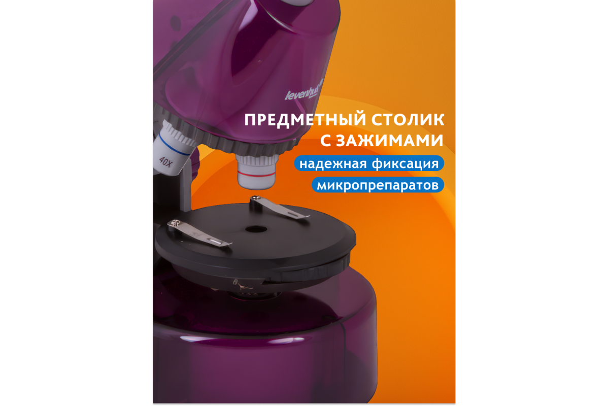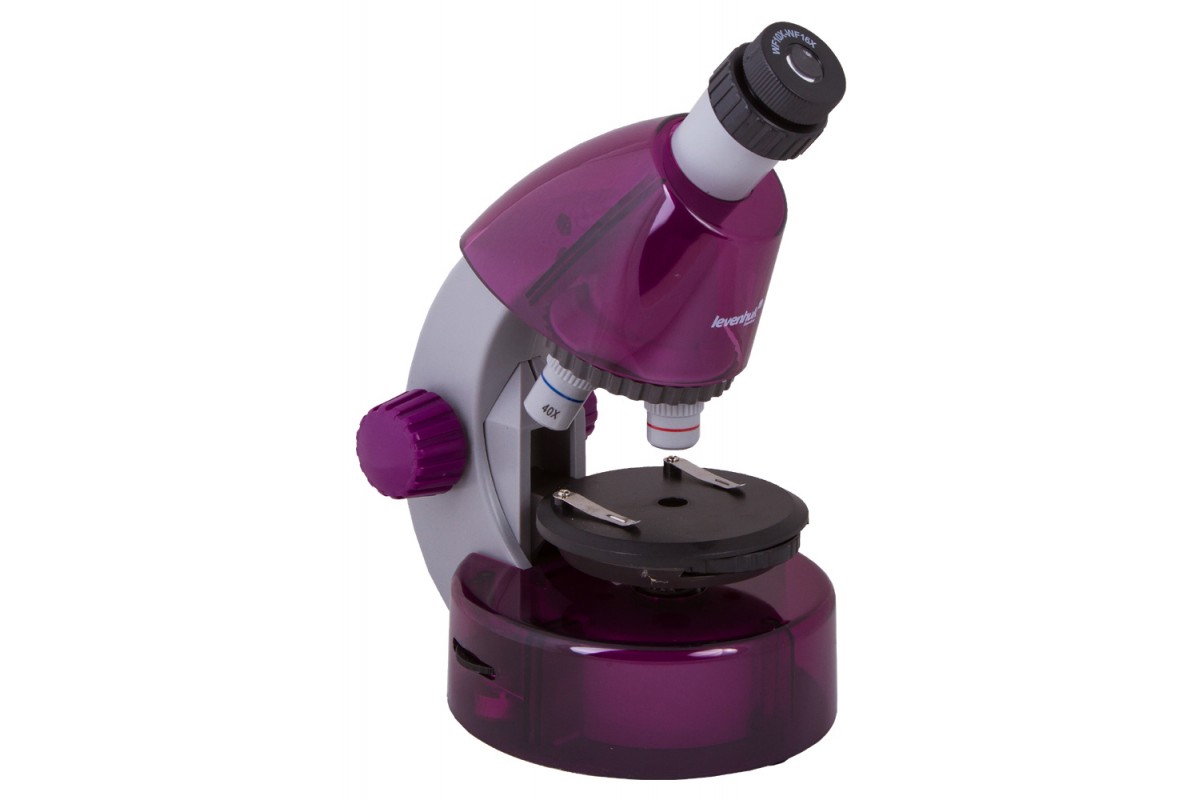 Яркий микроскоп Levenhuk LabZZ 101 Amethyst\Аметист станет прекрасным подарком для любознательного ребенка! С его помощью маленький исследователь сможет открыть множество удивительных тайн микромира. В комплекте есть все, что нужно для проведения первых опытов с микроскопом. Кроме того, микроскоп отличается оригинальным внешним видом – он изготовлен в ярко-фиолетовом полупрозрачном корпусе необычный формы.