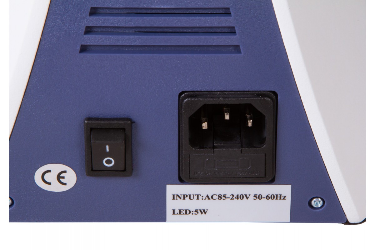 Двухкоординатный предметный столик снабжен препаратоводителем. Яркая светодиодная подсветка работает от сети переменного тока, есть регулировка яркости. Для более точной настройки освещения используется конденсор Аббе с ирисовой диафрагмой. В специальный держатель можно устанавливать светофильтры.