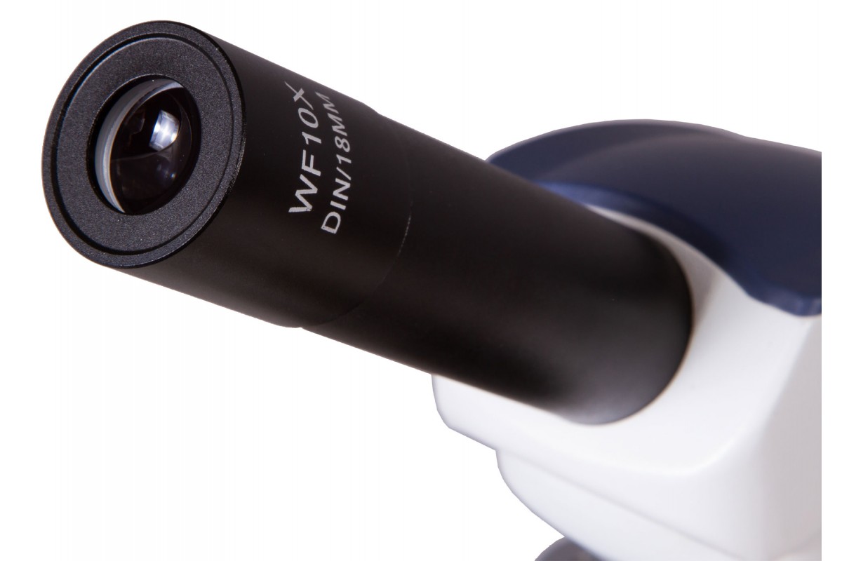 В Levenhuk MED 10M используется ахроматическая оптика, которая передает четкое и контрастное изображение. Монокулярная насадка наклонена под углом в 45° и может поворачиваться вокруг своей оси на 360°. Микроскоп удобно использовать при групповых исследованиях, а также для длительного изучения образцов.