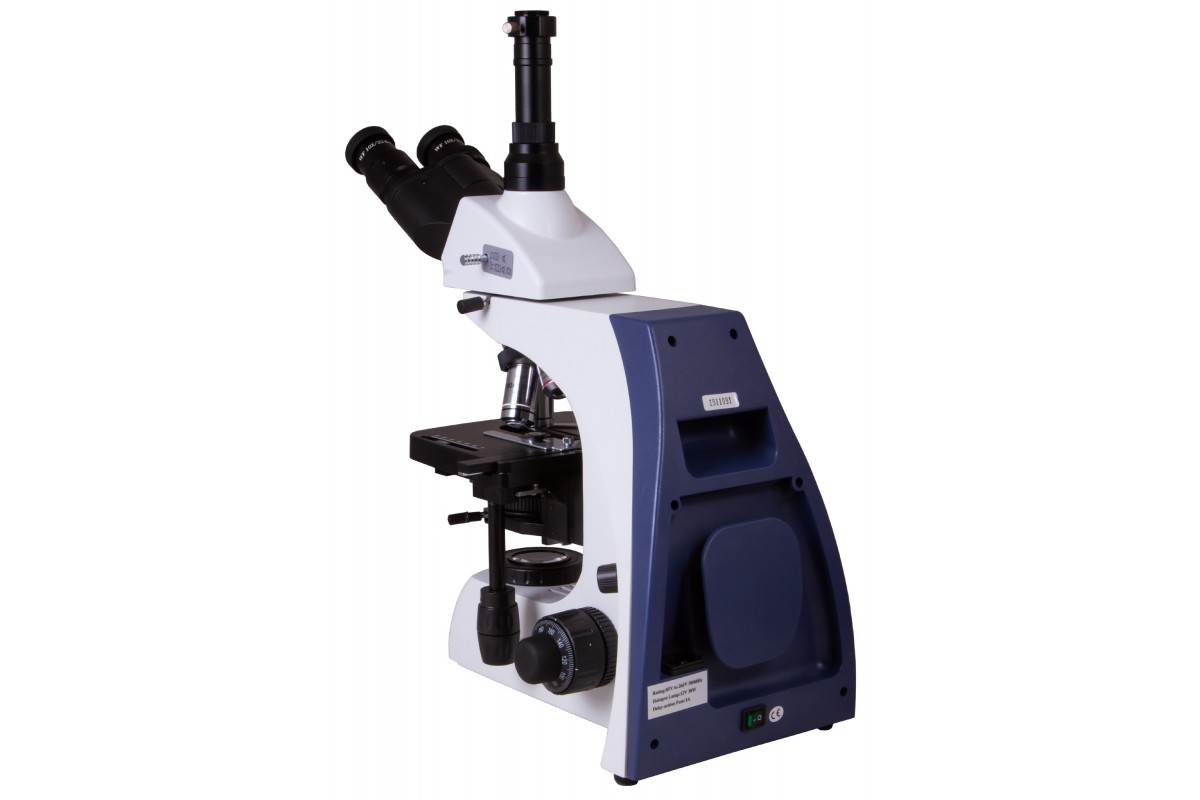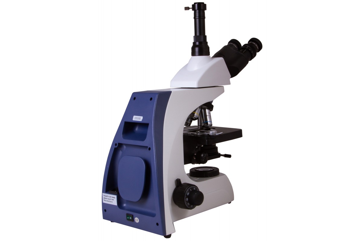 Особенности: • Тринокулярная поворотная насадка со световым делителем • Планахроматическая оптика, увеличение – от 40 до 1000 крат • Окуляры и объективы из стекла с антигрибковым покрытием • Галогенная подсветка с регулировкой яркости • Возможность настройки освещения по Келеру • Питание от сети переменного тока