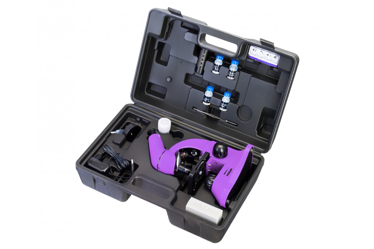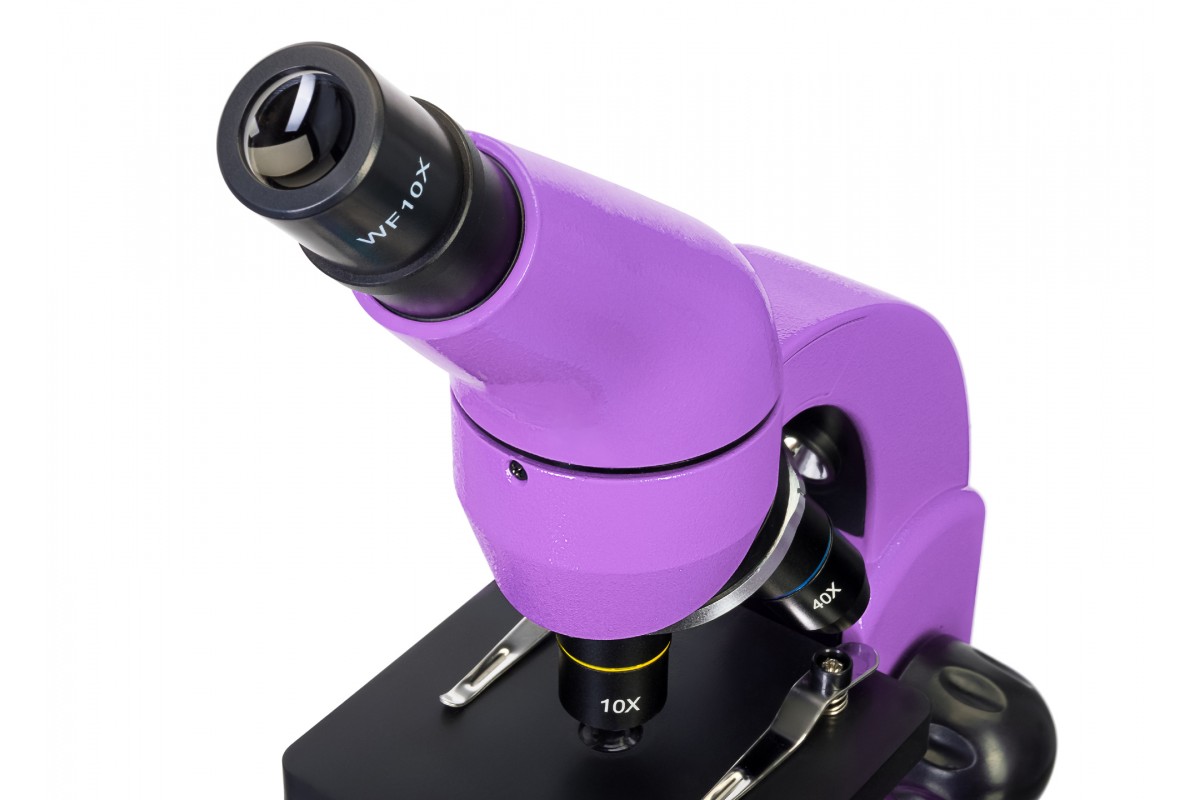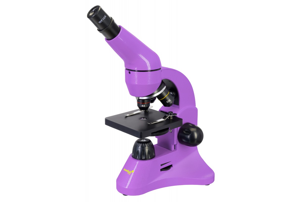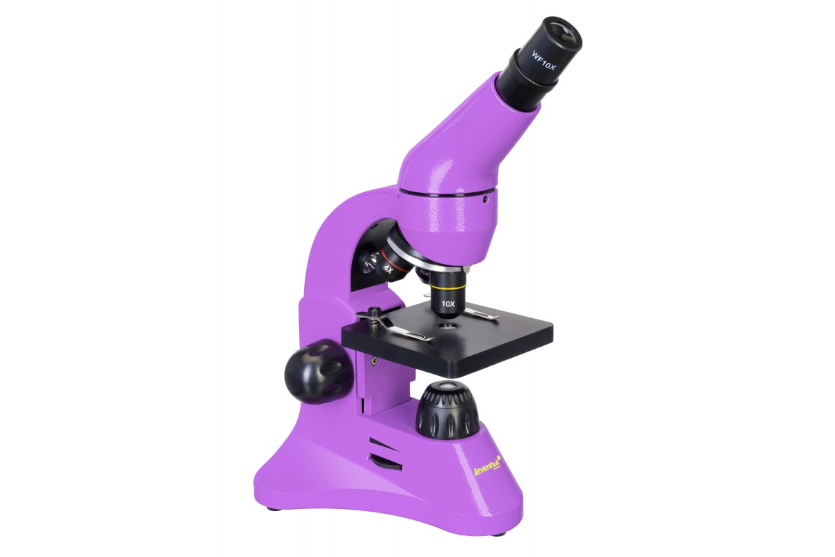 Современный микроскоп Levenhuk Rainbow 50L Amethyst\Аметист – простой способ увлечь ребенка учебой. С помощью этого микроскопа юный исследователь узнает, из чего состоят растения, как устроены животные, почему мухи могут ходить по стенам и многое другое! В комплект входит набор для опытов, в котором есть все необходимое для начинающего биолога. Яркий фиолетовый корпус привлекает внимание – этот микроскоп станет отличным подарком!