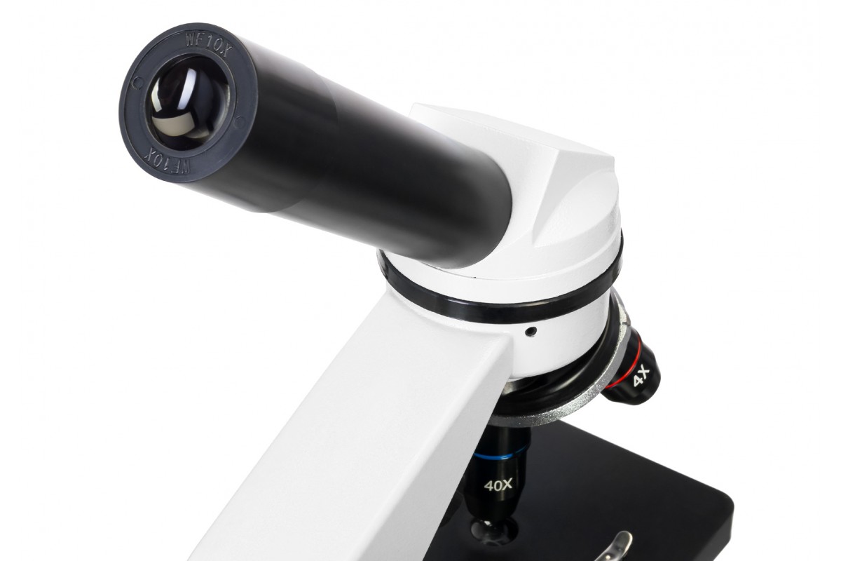 Линзы сделаны из высококачественного оптического стекла, которое отличается высокой прозрачностью и не искажает изображение. Для лучшего светопропускания оптика покрыта просветляющим составом. Три объектива позволяют получить достаточно широкий диапазон увеличений – от 40 до 400 крат. Чтобы сменить кратность, просто поверните револьверное устройство.