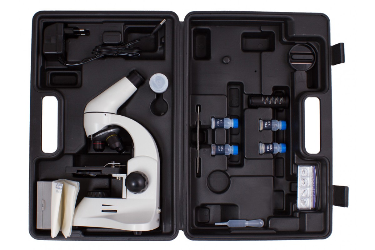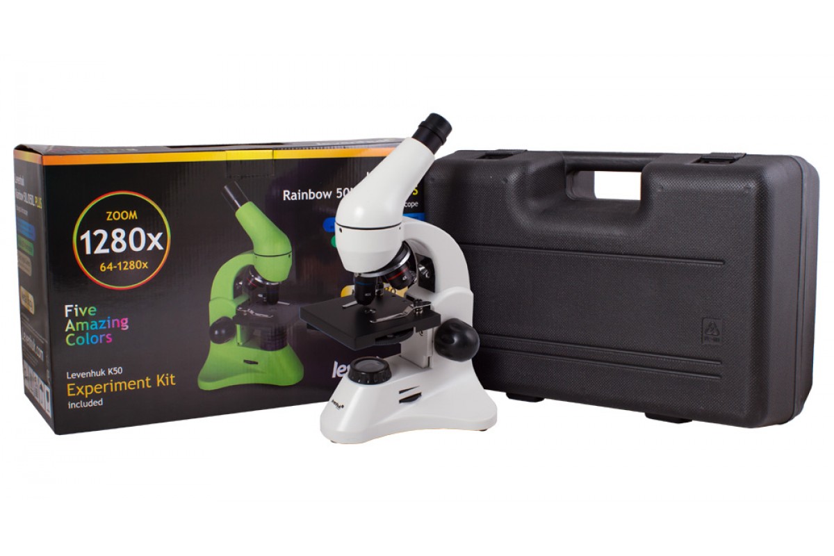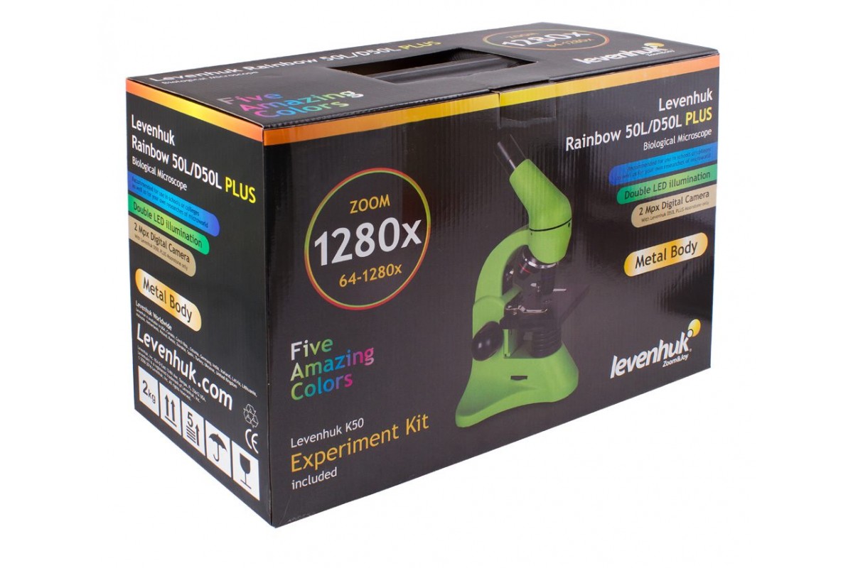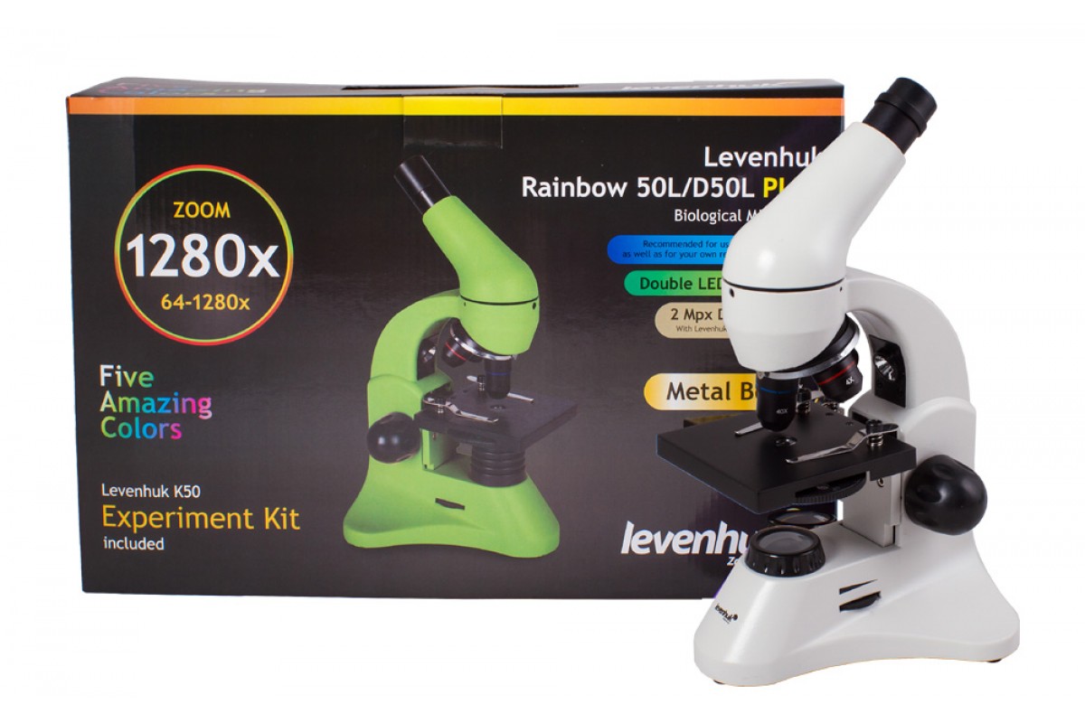 Микроскоп Levenhuk Rainbow D50L PLUS, 1,3 Мпикс – это учебный биологический микроскоп, в который можно наблюдать образцы любой степени прозрачности. Он позволяет исследовать микроорганизмы, обитающие в воде, рассматривать клетки в тканях растений и животных, изучать структуру некрупных объектов окружающего мира (монеты, минералы и проч.). Микроскоп подходит для работы как с готовыми образцами из наборов, так и с самостоятельно изготовленными микропрепаратами. Прибор комплектуется цифровой камерой, которую можно использовать для передачи изображения с объектива на экран компьютера, а также фото- и видеофиксации исследований. Также в комплект поставки включен набор для экспериментов.