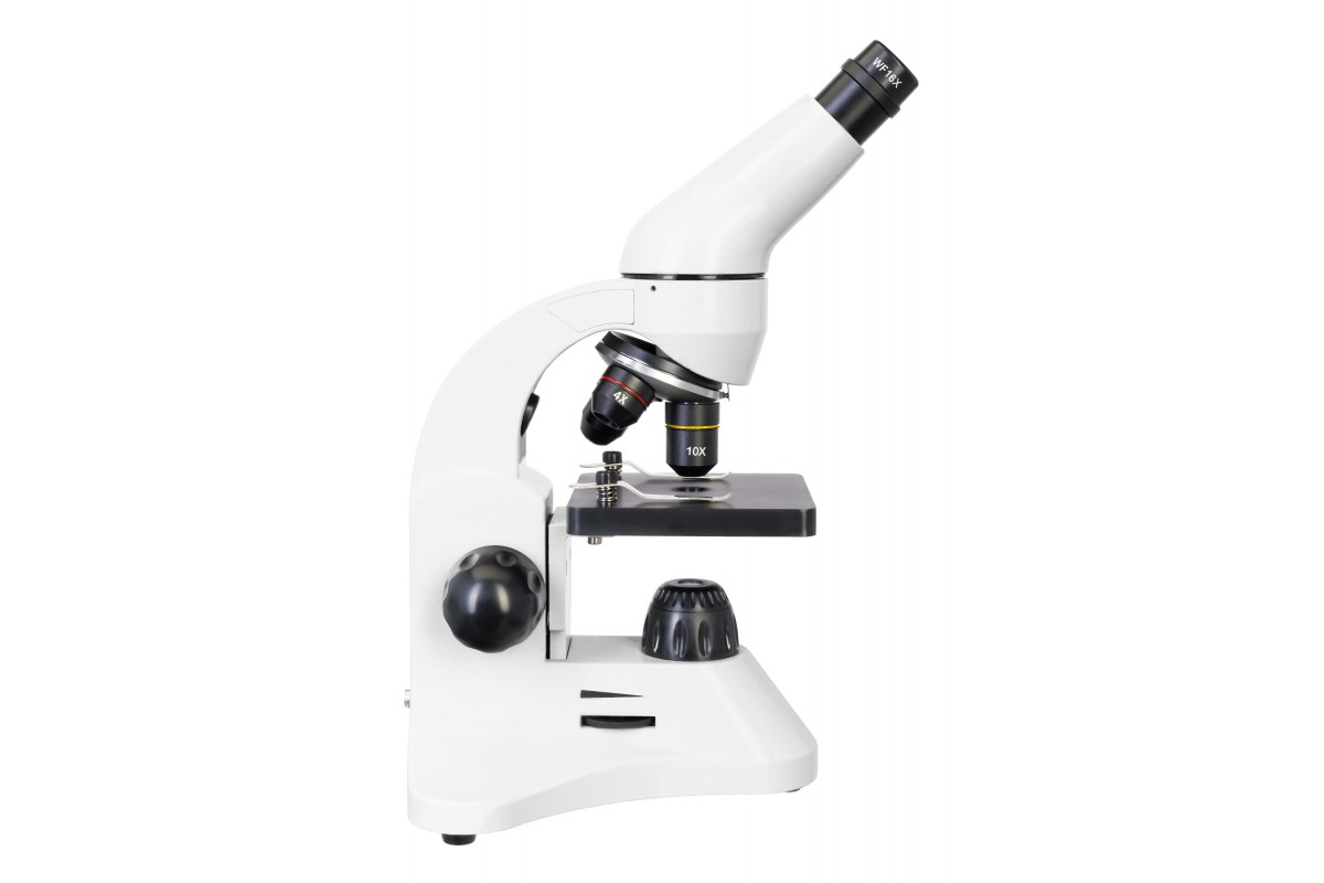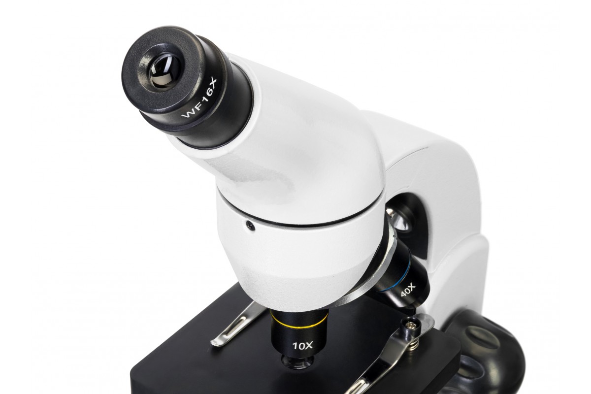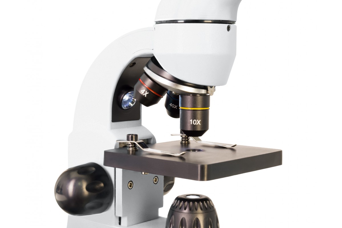 Три объектива позволяют получить увеличения 64, 160 и 640 крат. Объектив с наибольшей кратностью (40xs) снабжен пружинным механизмом. Даже если при фокусировке случайно опустить объектив слишком низко, он не раздавит покровное стекло препарата – подпружиненная основа отодвинется. И оптика, и препарат останутся целыми. В комплект входит качественная линза Барлоу, удваивающая кратность прибора с каждым объективом. Таким образом, уже в базовой комплектации максимальное увеличение микроскопа составляет 1280 крат!