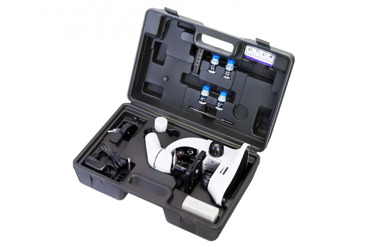 Чтобы части прибора не потерялись и не сломались при транспортировке, микроскоп комплектуется надежным кейсом из прочного пластика.