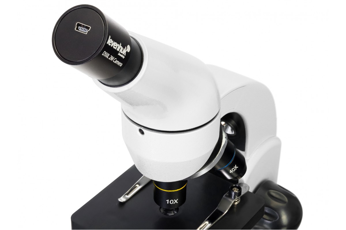 Микроскоп Levenhuk Rainbow D50L также совместим с цифровыми камерами Levenhuk (дополнительные камеры приобретаются отдельно). Камеры Levenhuk устанавливаются в окулярную трубку вместо окуляра.