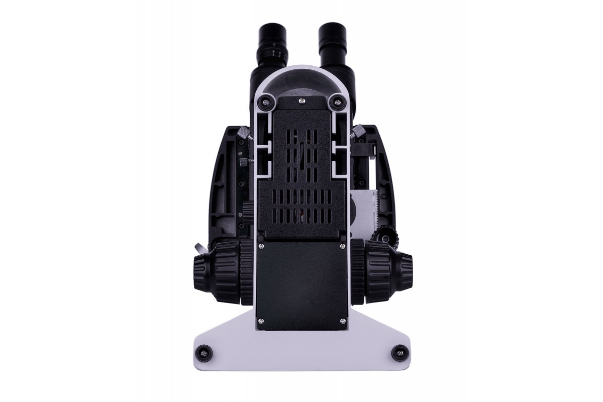 Для проходящего освещения тоже используется светодиод, но мощностью 3 Вт. Он дополнен конденсором светлого поля, с помощью которого регулируется интенсивность освещения рабочей области. В конденсоре есть слот для установки слайдера темного поля или фазового контраста. Слайдер является быстрым и легким способом получить на микроскопе дополнительный метод исследования без замены конденсора.