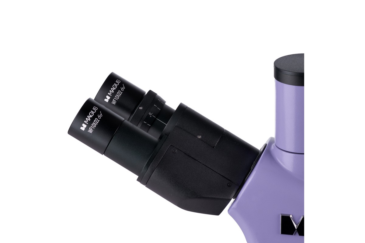 Наличие тринокулярной насадки позволяет не только проводить на микроскопе непосредственные наблюдения, но и использовать цифровую камеру для их фото- и видеофиксации. Камера устанавливается в вертикальный канал визуализации, в комплект она не входит. Окулярные тубусы насадки вращаются на 360°, поэтому высоту взора легко настроить под рост любого пользователя.