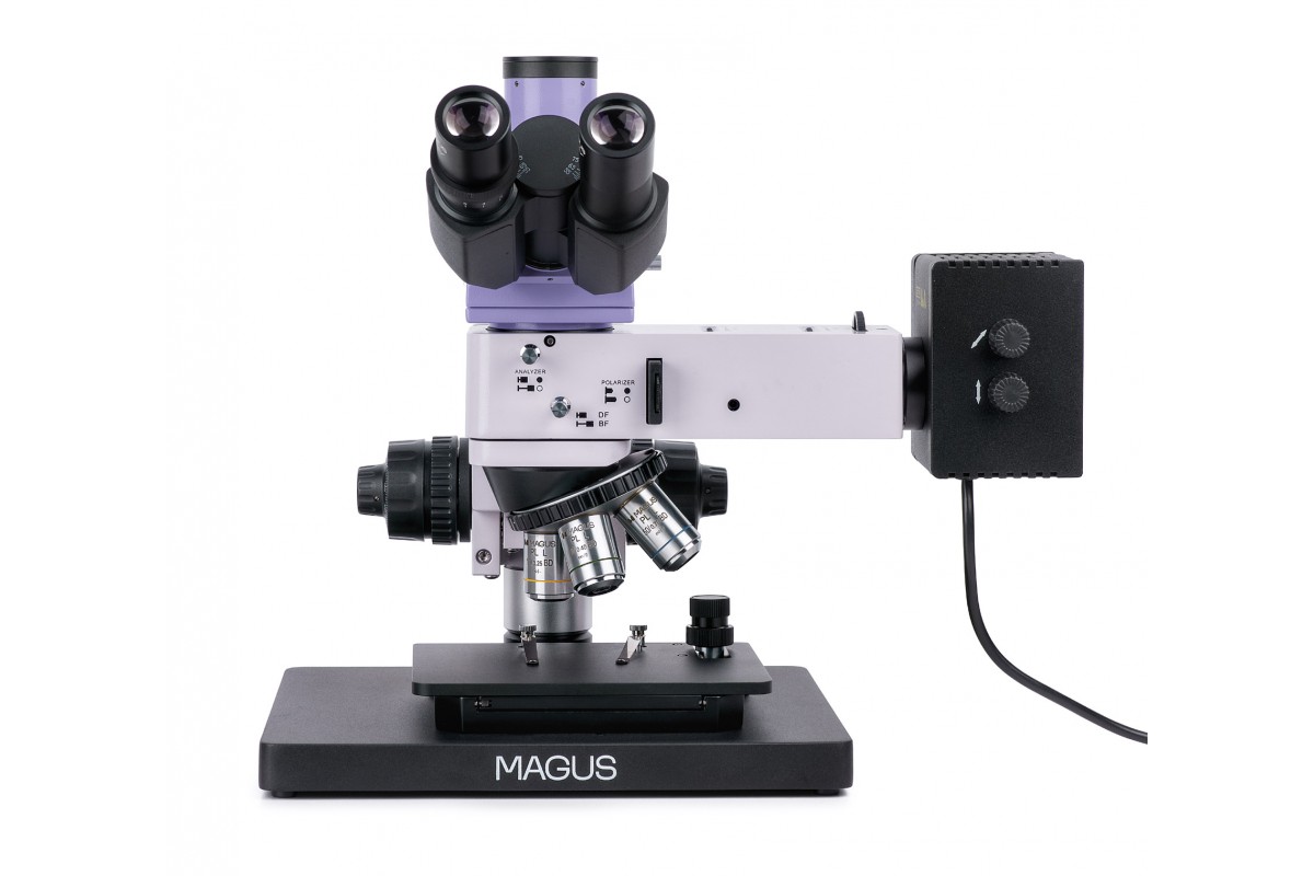 Микроскоп оборудован встроенным анализатором и съемным поляризатором. Поляризатор вращается в диапазоне 0–360°, анализатор не вращается. При помощи апертурной диафрагмы и полевой диафрагмы настраивается освещение по методу Кёлера. Обе диафрагмы и источник света центрируются. Есть набор светофильтров. Устройство для работы по методу темного поля встроено в насадку осветителя отраженного света.