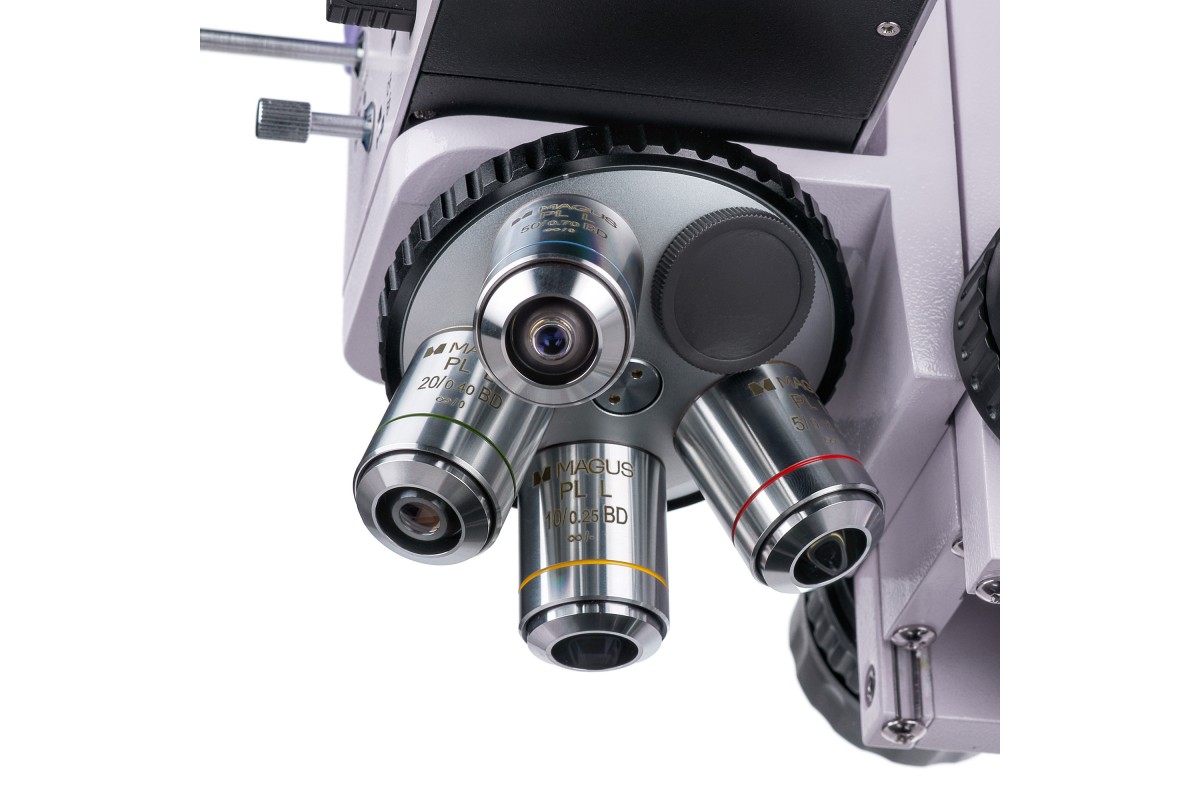 - Объективыпланахроматические, скорректированные на бесконечность: PL L5х/0,12 BD, PL L10х/0,25 BD, PL L20х/0,40 BD, PL L50х/0,70 BD; парфокальная высота 45 мм (*опция: PL L40х/0,60 BD, PL L60x/0,70 BD, PL L80x/0,80 BD, PL L100х/0,85 BD (сухой))