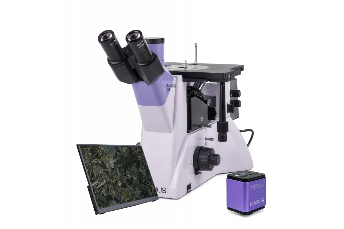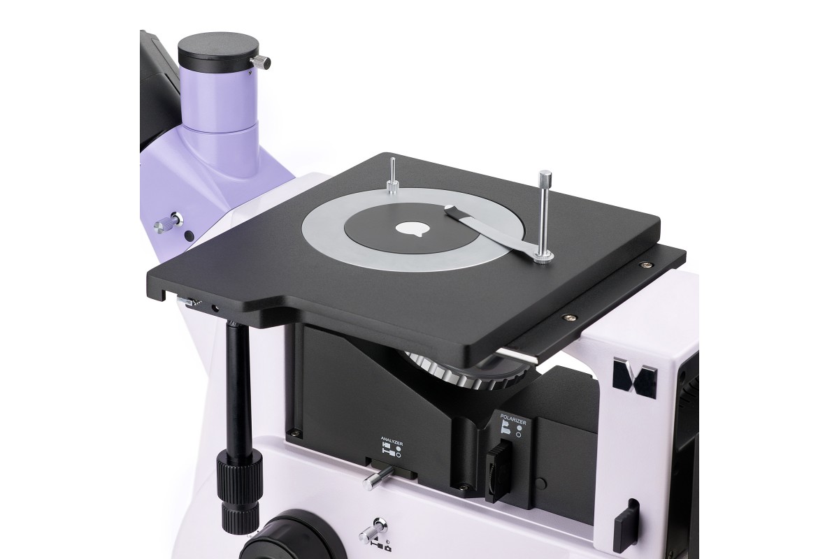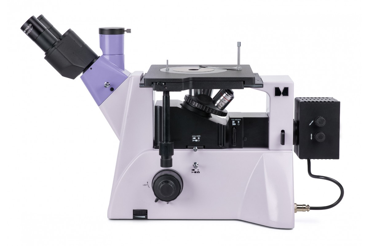 На этом микроскопе непрозрачные объекты исследуются в отраженном свете по методу светлого поля, темного поля и простой поляризации.