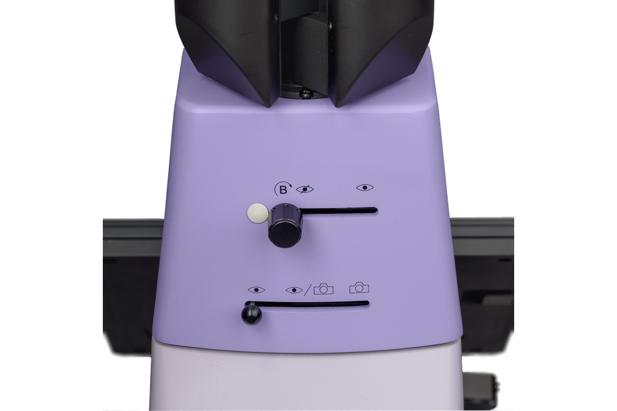 Цифровая камера устанавливается в вертикальный тубус визуальной насадки или в один из боковых портов визуализации на корпусе микроскопа. Световой поток на тринокулярной насадке переключается 100/0, 50/50 или 0/100. Деление света на правом фотопорте – 100/0 и 20/80; на левом – 100/0 и 0/100.