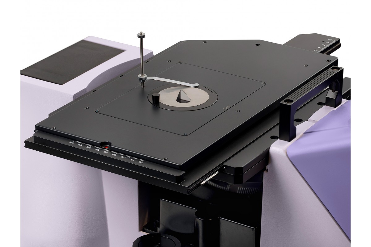 Микроскоп управляется с минимальным движением руки, поскольку длинная ручка управления столиком и рукоятка тонкой фокусировки расположены в одной рабочей зоне.