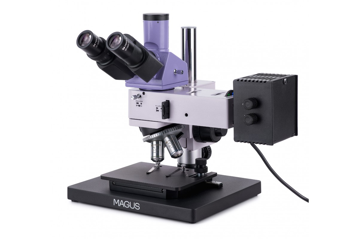 MAGUS Metal 630 – металлографический микроскоп на штативе оригинальной конструкции. С его помощью можно исследовать микроструктуру непрозрачных образцов – металлов, сплавов, полупроводниковых материалов – любой высоты и геометрии. Освещение рабочей области осуществляется галогенной лампой (отраженный свет), наблюдения ведутся в светлом поле и в поляризованном свете. Микроскоп имеет небольшие размеры и без труда помещается в малогабаритную мебель, может использоваться в ограниченном пространстве. Прибор востребован на предприятиях промышленности, в лабораториях контроля качества, в высших учебных заведениях.