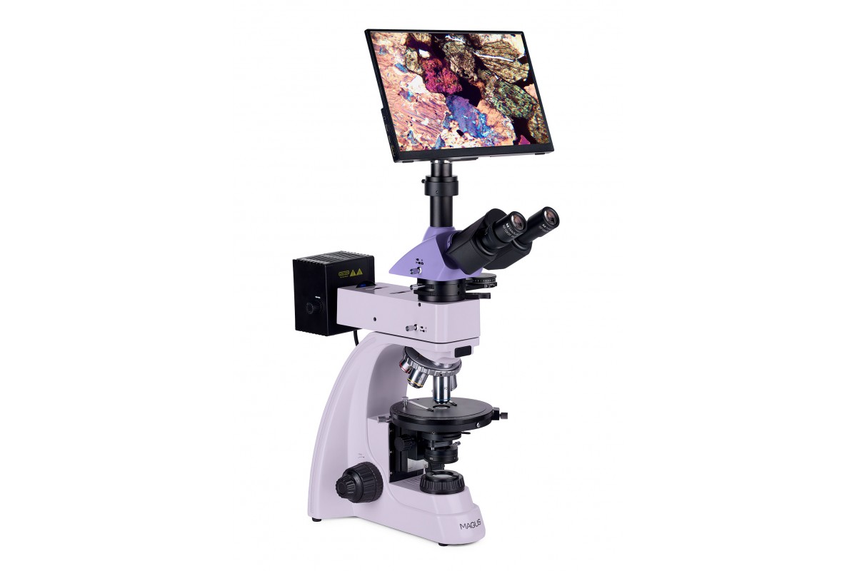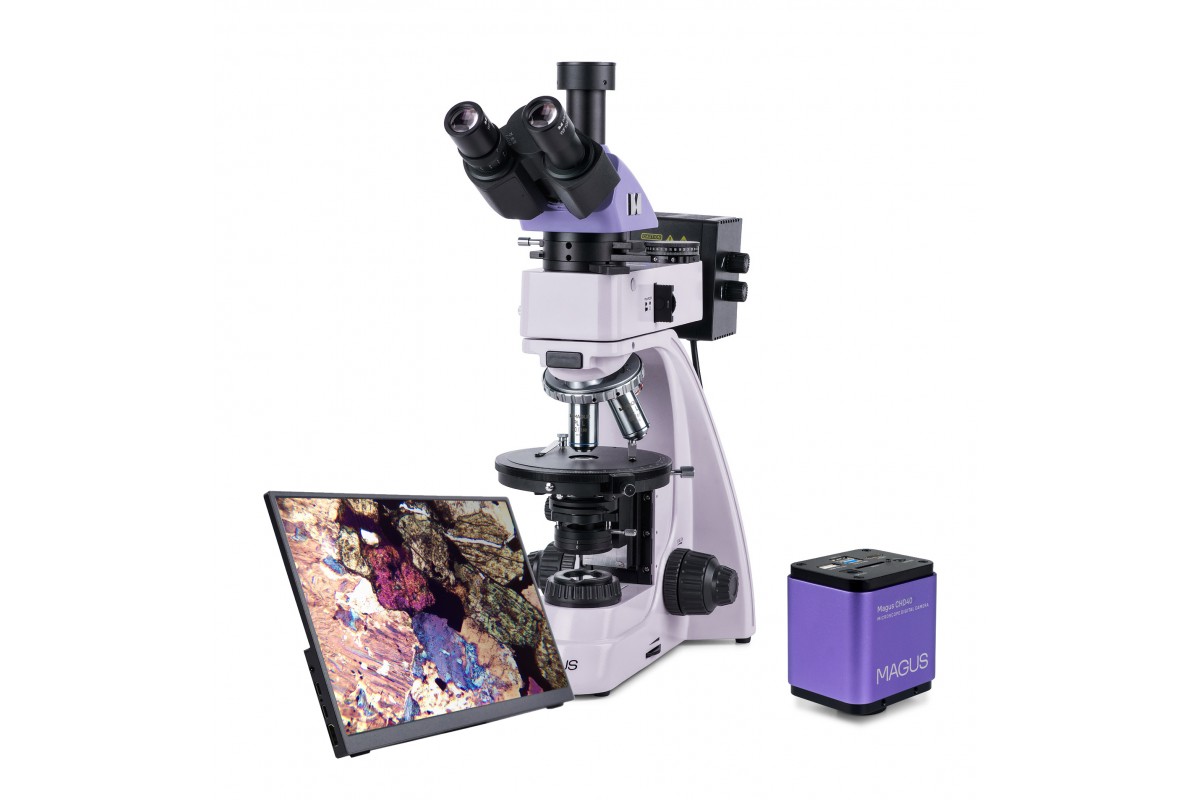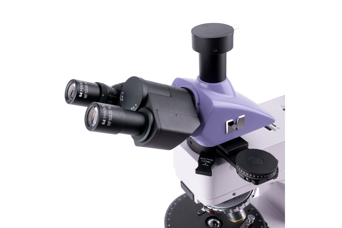 Объективы микроскопа свободны от внутренних напряжений. В промежуточном тубусе установлены анализатор и линза Бертрана, есть слот для установки компенсаторов.
