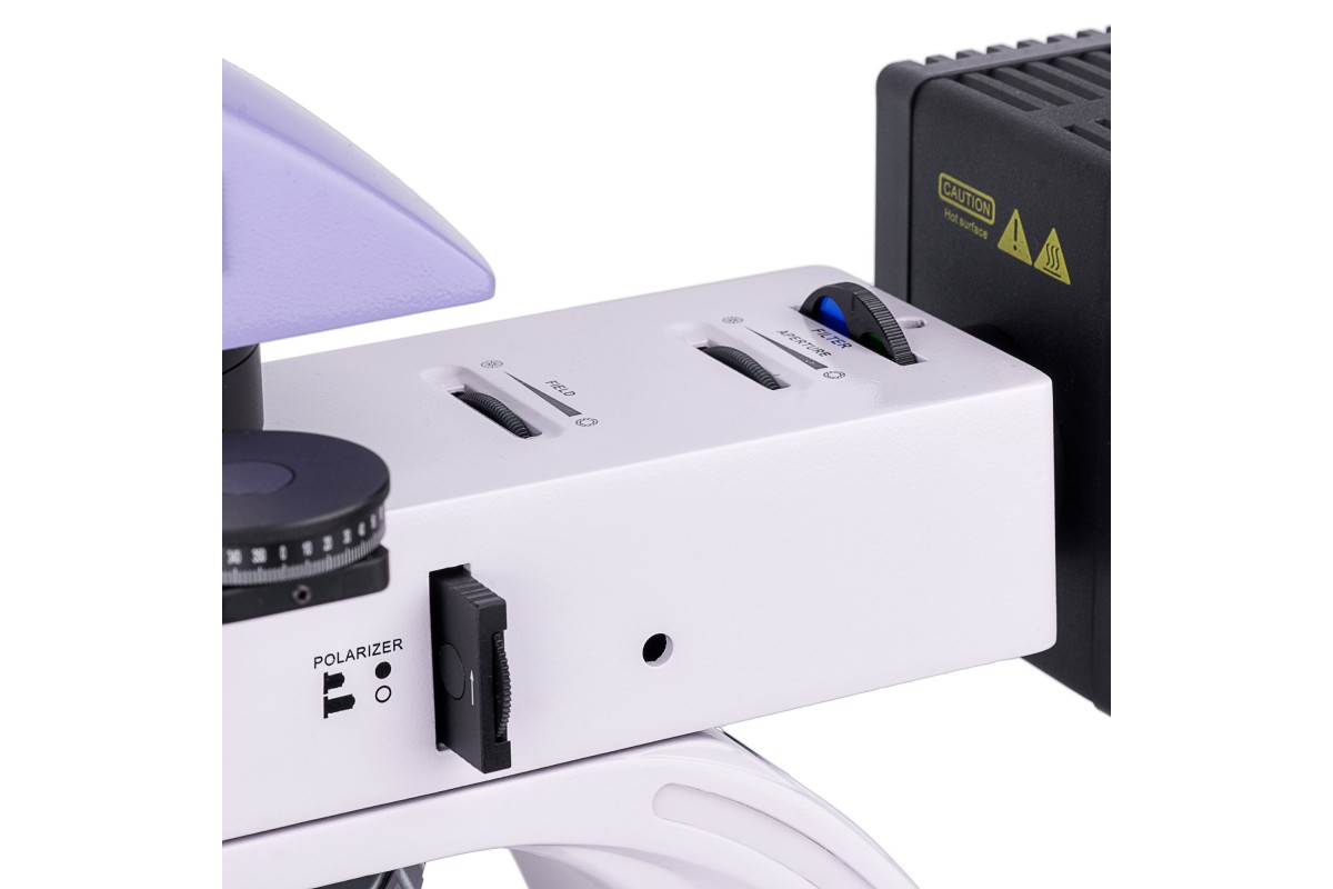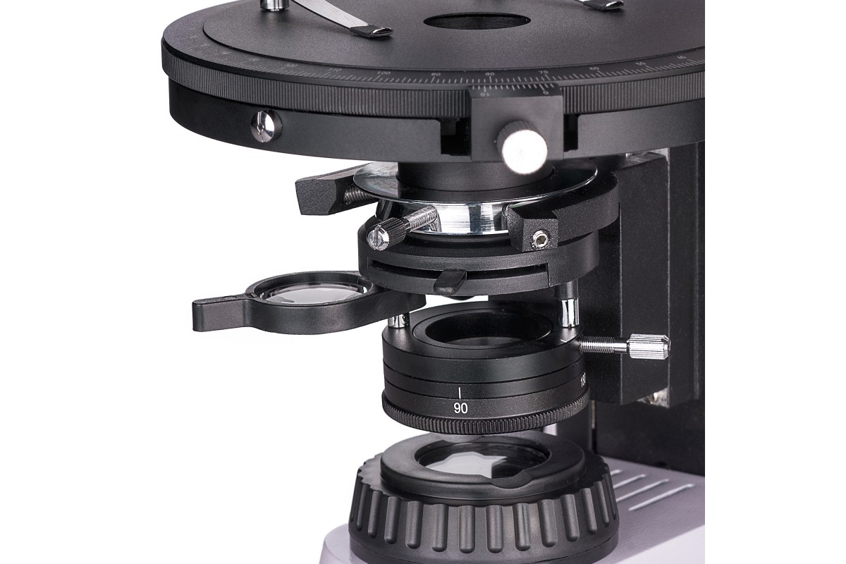 Регулируемая полевая диафрагма, центрируемый и регулируемый по высоте конденсор Аббе с регулируемой апертурной диафрагмой и откидной линзой Лазо реализуют настройку освещения по Кёлеру. Числовая апертура конденсора 1,25. Поляризатор вращается в диапазоне 0–360°, на шкале нанесены отметки четырех углов поворота 0°, 90°, 180°, 270° относительно анализатора. Анализатор вращается на 360°, нониусная шкала анализатора для точности выставления угла.