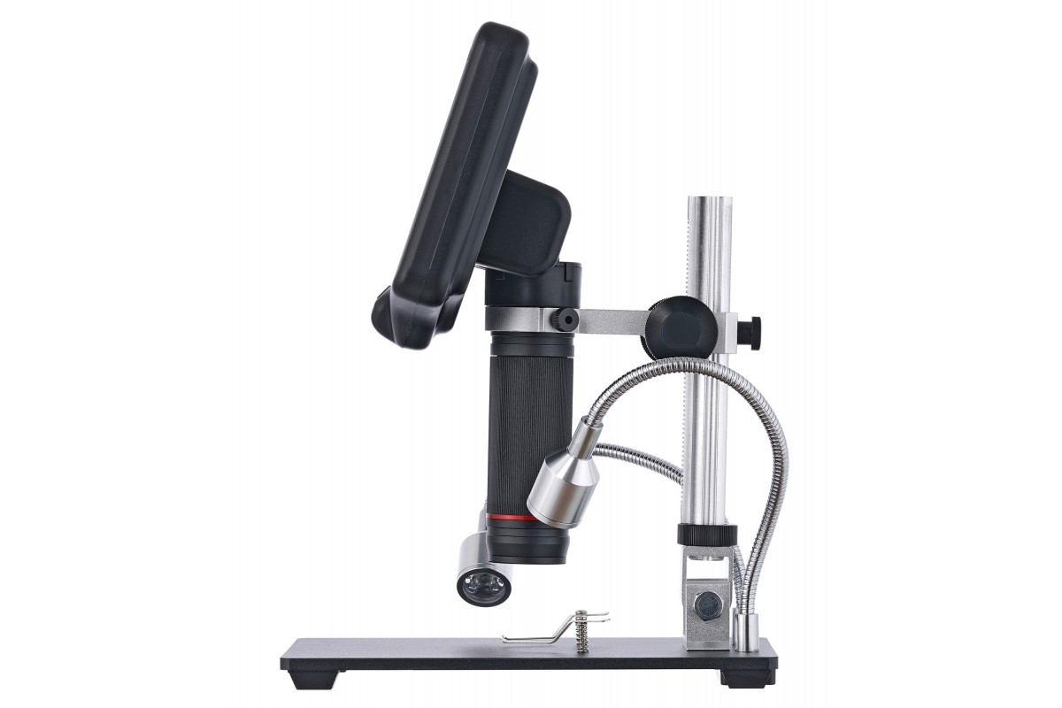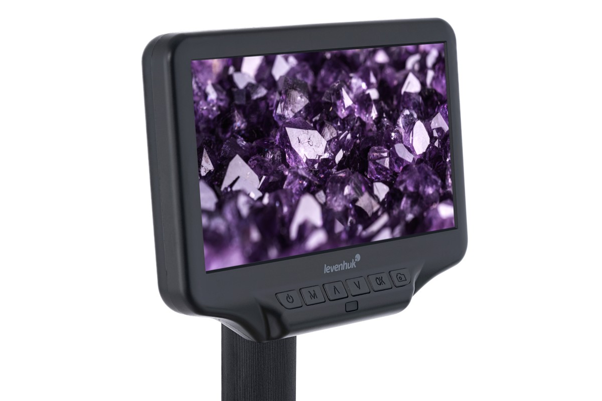 Микроскоп выводит изображение на встроенный экран. Это большой ЖК-экран с диагональю 7 дюймов (около 18 см). Картинка цветная, хорошо детализированная. При необходимости к прибору можно подключить монитор или телевизор через кабель HDMI (в комплекте). Для исследований можно применять цифровое или оптическое увеличение. Общий диапазон кратности составляет от 5 до 270 крат, оптический диапазон – от 5 до 40 крат.
