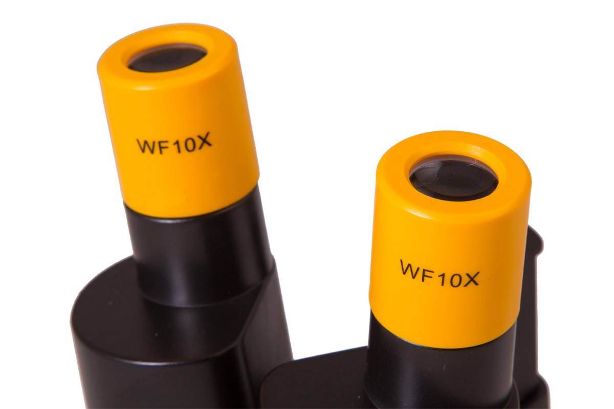 Бинокулярная насадка с регулировкой межзрачкового расстояния удобна при проведении длительных наблюдений. Подсветка расположена над предметным столиком и ярко освещает объект. Она работает от батареек, поэтому нет необходимости вести работы рядом со стационарным источником питания. При желании подсветку можно отключить и вести наблюдения при естественном свете.