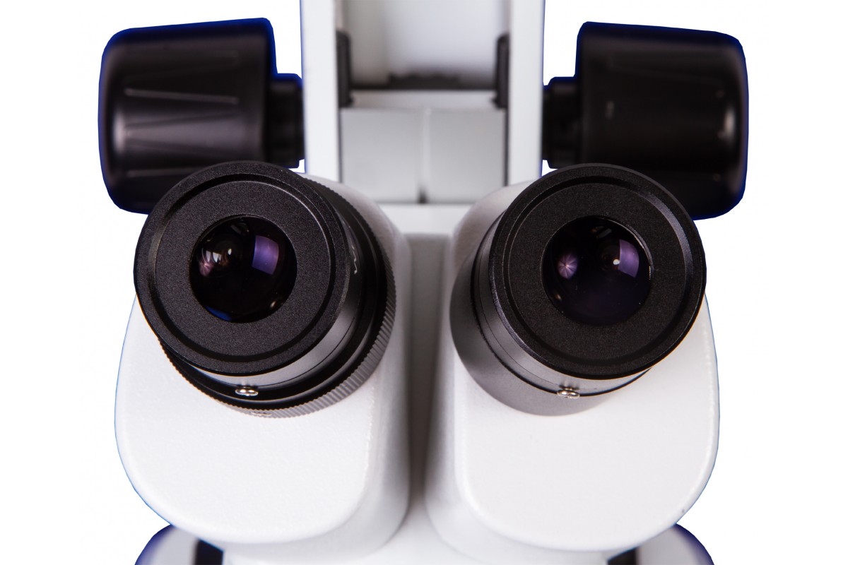 Оптическая схема микроскопа включает бинокулярную насадку с широкоугольными окулярами и поворотный объектив с изменяемым увеличением. Окуляры дают 10-кратное увеличение и снабжены резиновыми наглазниками. Объектив можно поворачивать, тем самым меняя его кратность, прямо по время исследований.