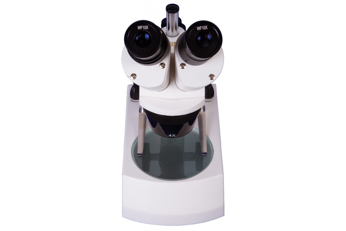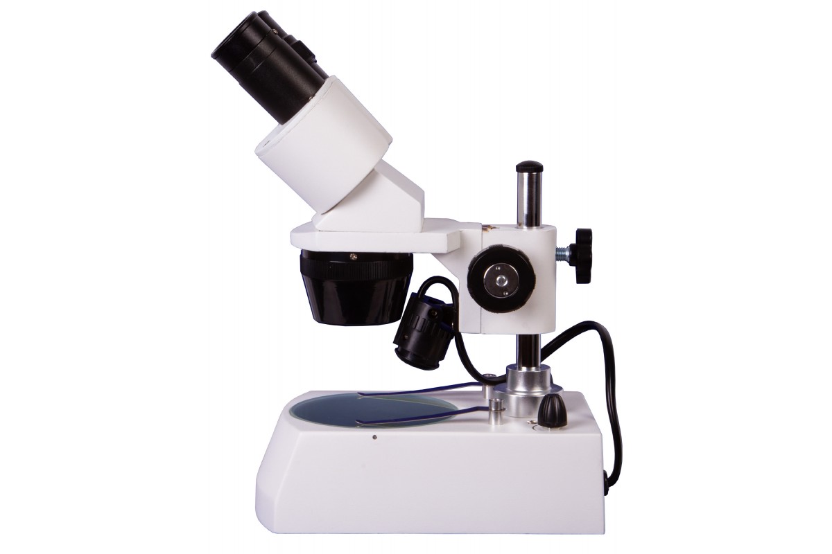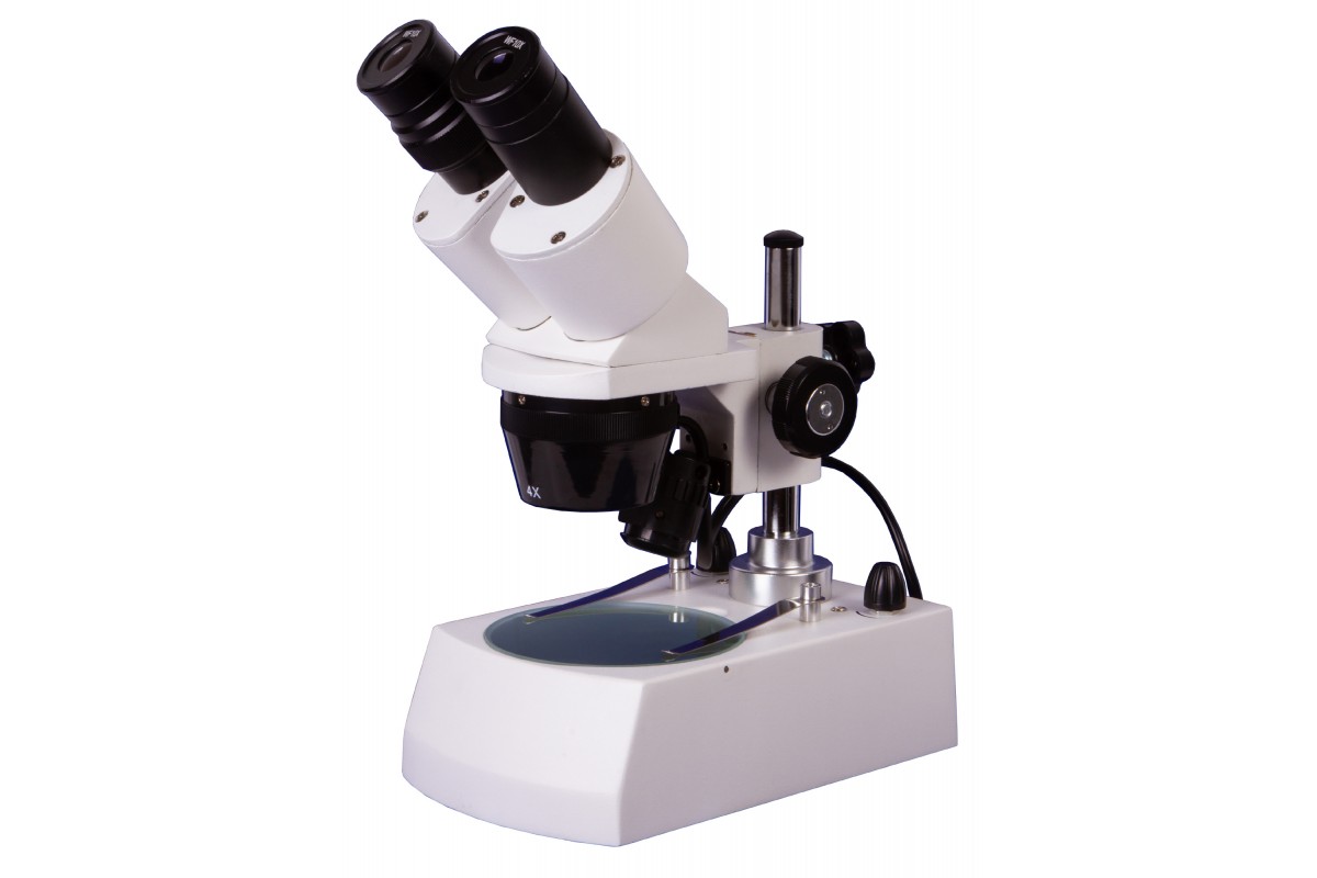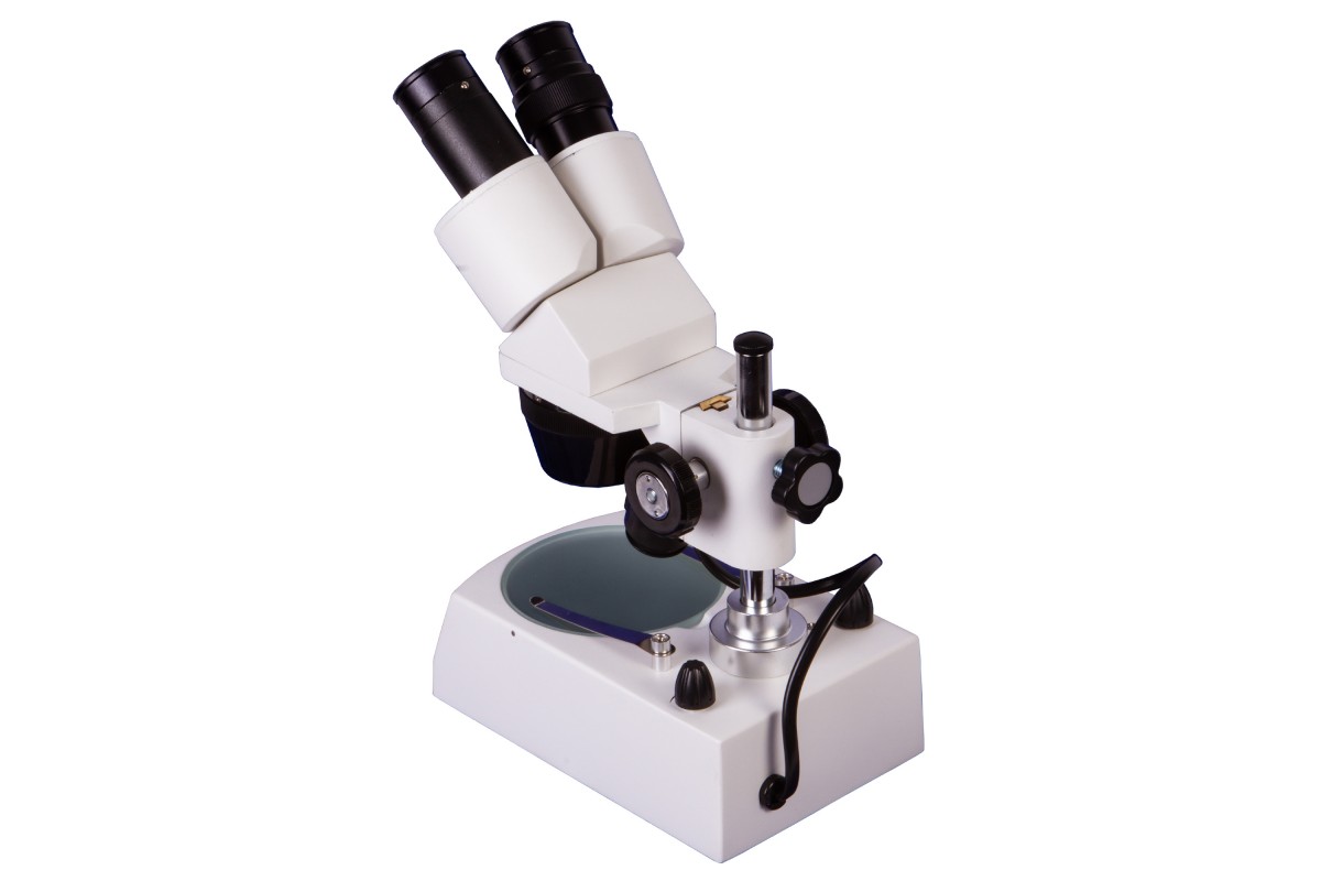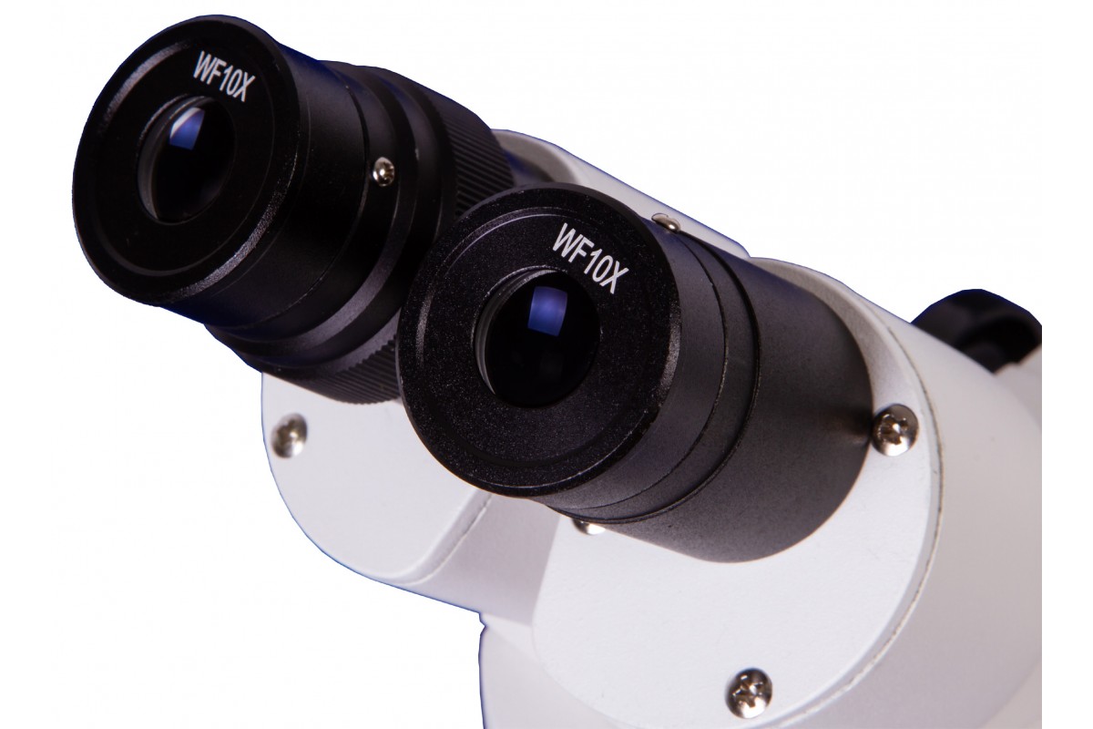 Оптика микроскопа создает объемное, максимально приближенное к реальности, изображение. Бинокулярная насадка позволяет смотреть в микроскоп сразу обоими глазами, что снижает нагрузку на зрение. Окуляры обеспечивают 10-кратное приближение, имеют диоптрийную коррекцию и благодаря резиновым наглазникам меньше подвержены боковой засветке. Объектив уже установлен и имеет поворотный механизм с двумя увеличениями. Общая кратность микроскопа составляет 20х и 40х.
