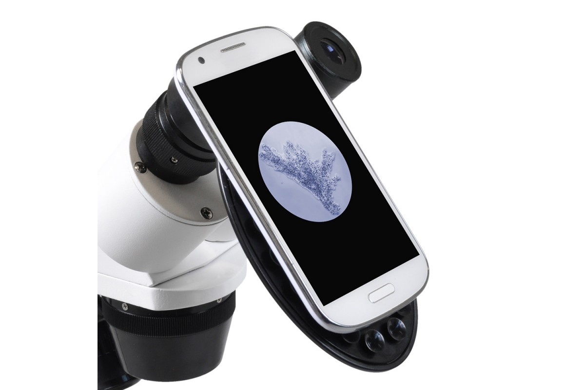 В комплект поставки уже включены необходимые для наблюдений аксессуары. Также здесь есть держатель для смартфона, который позволяет использовать мобильное устройство для фотографирования образцов, и жесткий кейс для переноски и хранения.