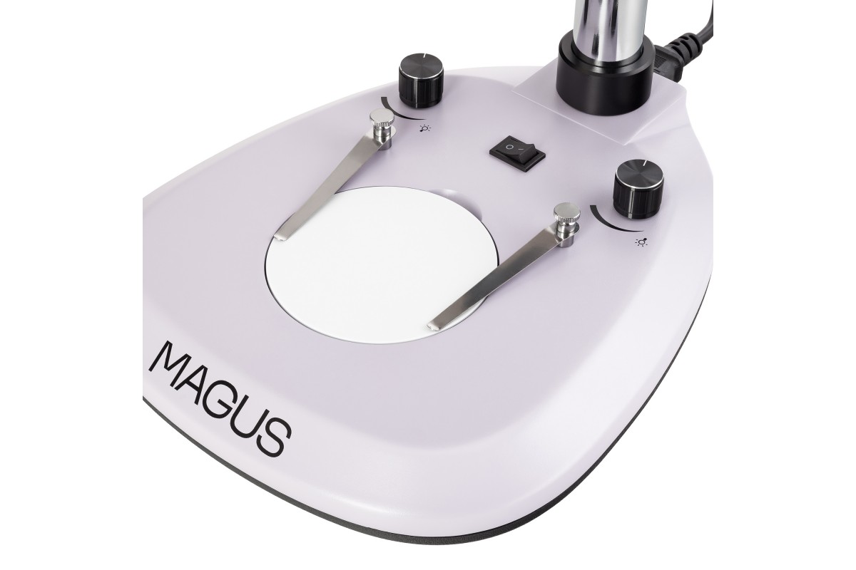 • Основание со встроенным источником проходящего света, встроенным блоком питания и штативом с фокусировочным механизмом