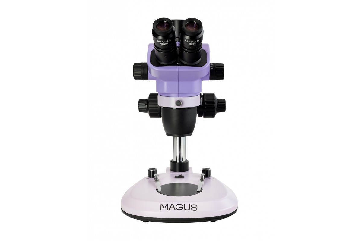 Прибор оснащен тринокулярной насадкой, с помощью которой можно вести одновременное визуальное наблюдение через два окуляра и использовать третий вертикальный канал для подключения цифровой камеры. Насадка, свободно поворачивающаяся на 360°, обеспечивает удобное позиционирование микроскопа в любых условиях рабочего пространства. Окуляры с диоптрийной коррекцией и удаленным зрачком полезны пользователям, работающим в очках. Коэффициент трансфокации 8,4:1 позволяет плавно изменять кратность увеличения без потери фокуса, сохраняя неизменным положение объекта, а наличие коаксиальных ручек для грубой и тонкой фокусировки обеспечивает пользователю точную настройку резкости даже при проведении микродвижений. Светодиодные элементы предоставляют возможность проводить базовые операции с образцами без дополнительного осветительного оборудования, а при необходимости микроскоп можно расширить дополнительными аксессуарами для бестеневого освещения, исследований темного поля или поляризованного света.