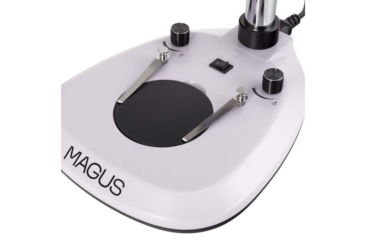 • Основание со встроенным источником проходящего света, встроенным блоком питания и штативом с фокусировочным механизмом