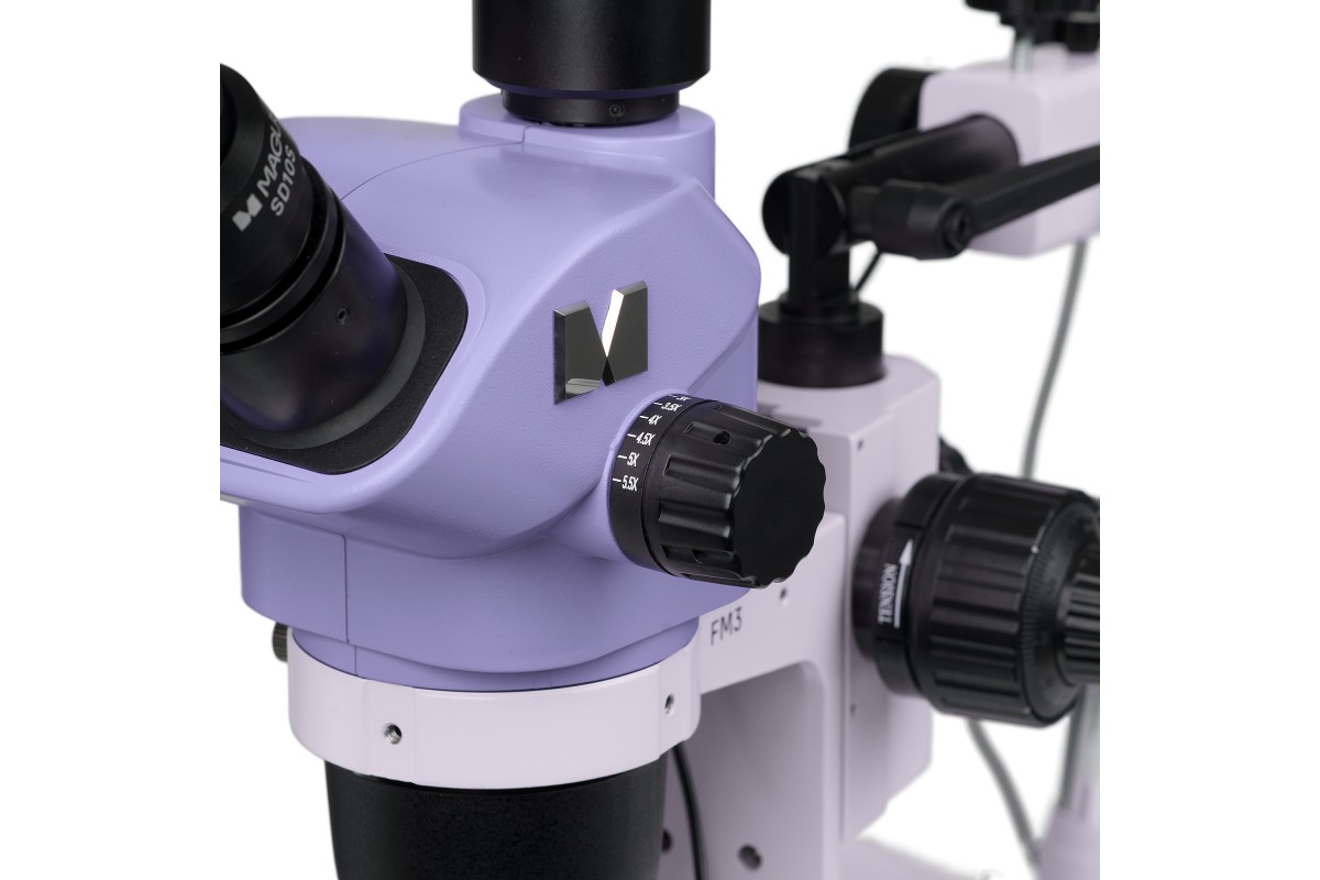 Панкратический объектив плавно изменяет увеличение в 8,4 раза без потери фокуса. Микроскоп формирует прямое (неперевернутое) объемное изображение. Дополнительная насадка на объектив 0,5х изменяет диапазон увеличения, поле зрения и рабочее расстояние микроскопа.