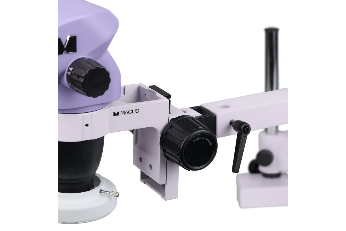 Универсальный штатив расширяет рабочую зону и предоставляет больше свободы в выборе положения оптической головы над рабочим местом. Штатив состоит из четырех секций и крепится к краю рабочего стола при помощи надежной струбцины, поэтому не занимает место на столе.