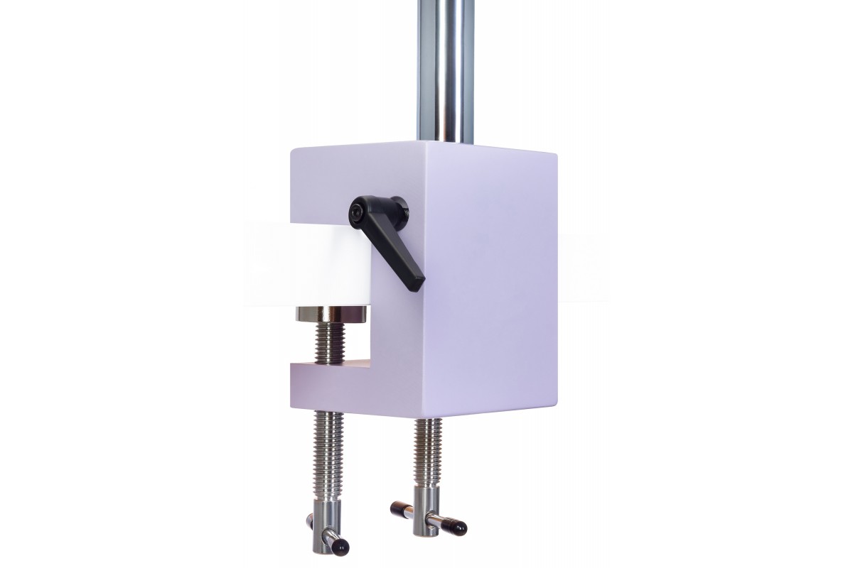 Универсальный штатив расширяет рабочую зону и предоставляет больше свободы в выборе положения оптической головы над рабочим местом. Штатив состоит из четырех секций и крепится к краю рабочего стола при помощи надежной струбцины, поэтому не занимает место на столе.