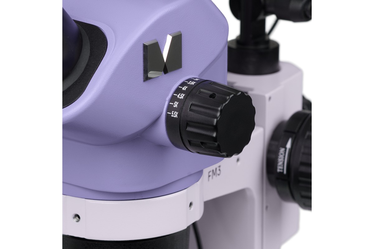 Панкратический объектив плавно изменяет увеличение в 8,4 раза без потери фокуса. Микроскоп формирует прямое (неперевернутое) объемное изображение. Дополнительная насадка на объектив 0,5х изменяет диапазон увеличения, поле зрения и рабочее расстояние микроскопа.