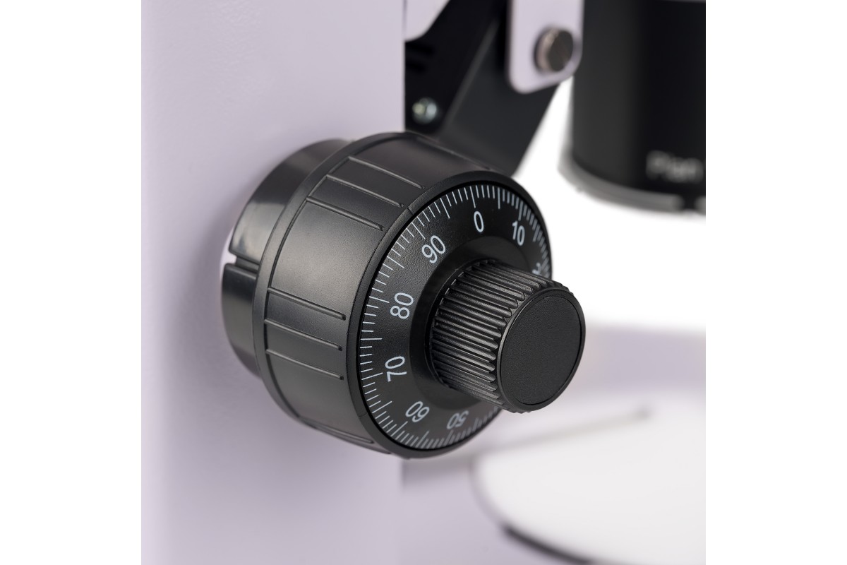 Добиться сфокусированного изображения можно с помощью системы фокусировки (грубой и тонкой), которая управляется рукоятками по обе стороны штатива. Жесткость хода механизма грубой фокусировки можно отрегулировать.