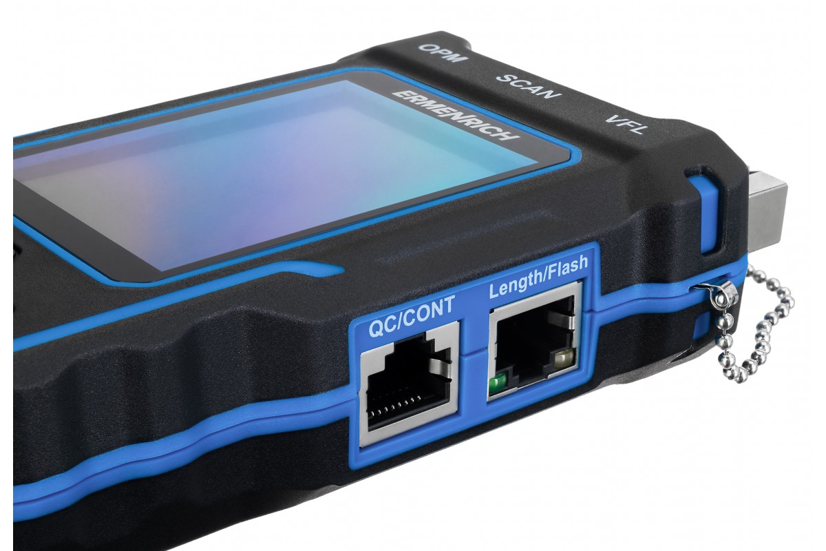 Тестирование PoE может включать в себя определение типа питающего устройства (PSE) и его местоположение (Mid-span/End-span), измерение постоянного напряжения в диапазоне 5–60 В и определение полярности. С помощью тестера находят обрыв линии, короткое замыкание и перекрещенные пары, а также определяют разъем подключения с помощью проблесковой индикации (функция Port Flash). Есть функция VFL для визуального обнаружения повреждений – пропускание через кабель лазерного пучка и его фиксация на противоположном конце и месте повреждения. Тестер имеет защиту от электромагнитных помех.
