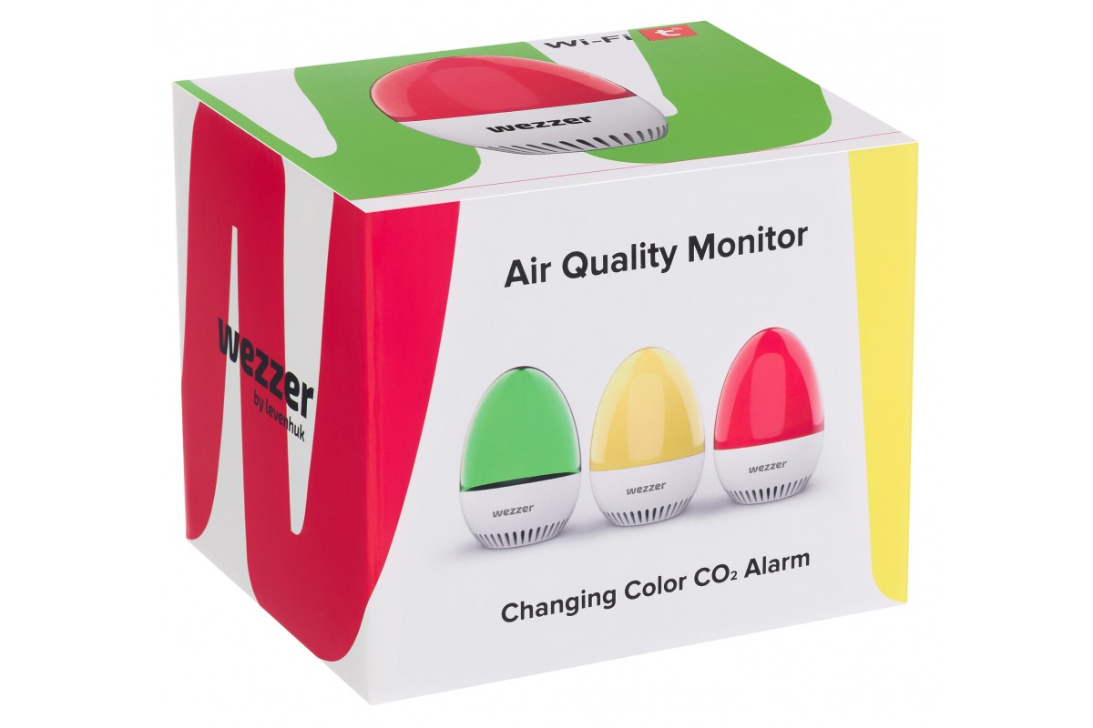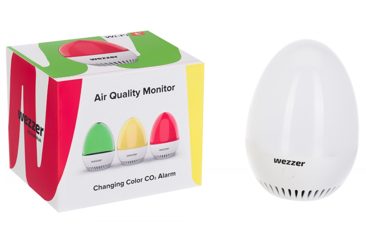 Прибор не имеет экрана, об уровне измерений он информирует цветом подсветки: зеленый цвет означает, что все хорошо; желтый указывает на негативное развитие событий; красный – это сигнал о том, что следует немедленно принять меры. Также прибор дает звуковой сигнал при достижении опасного уровня углекислого газа. Дополнительная функция – возможность связи со смартфоном по Wi-Fi и использования мобильного приложения «Smart Life / Tuya Smart» для настройки и управления.
