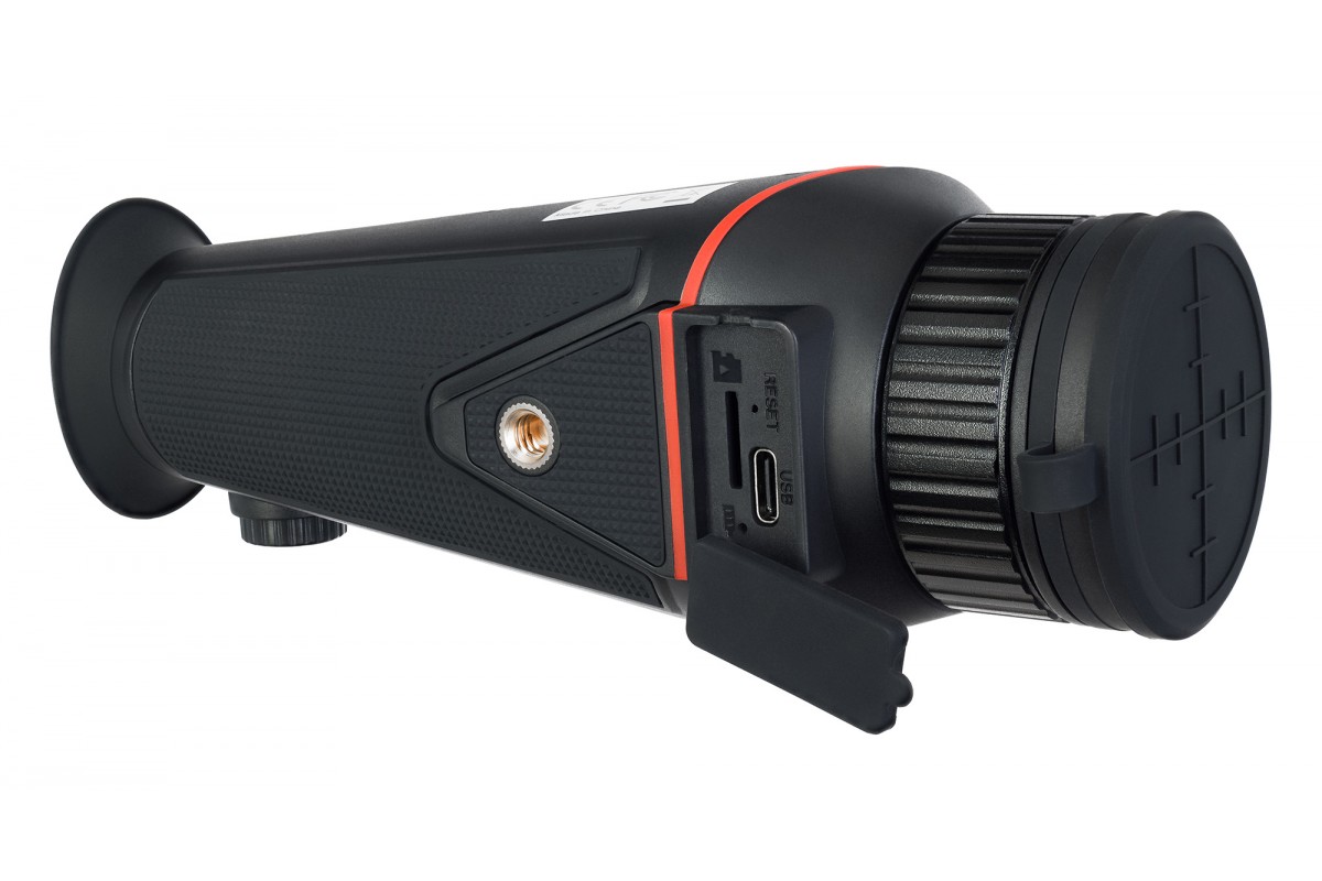 Монокуляр работает от встроенного аккумулятора. При полном заряде его энергии хватит на 13 часов работы при выключенном ИК-осветителе и на 5 часов при ночных наблюдениях. Сэкономить энергию поможет режим автоотключения: время можно выбрать из нескольких вариантов. Заряжается аккумулятор через кабель USB. Корпус устройства из металла и пластика имеет силиконовое покрытие, монокуляр хорошо и надежно ложится в руку и не выскользнет, даже если вы работаете в перчатках. Прибор защищен от проникновения пыли и от распыления воды. Монокуляр пригоден как для работы внутри помещений, так и для наружного наблюдения. Он выдерживает температуры от –20 до +50 °С при работе, а безопасно храниться может при диапазоне от –30 до +60 °С.