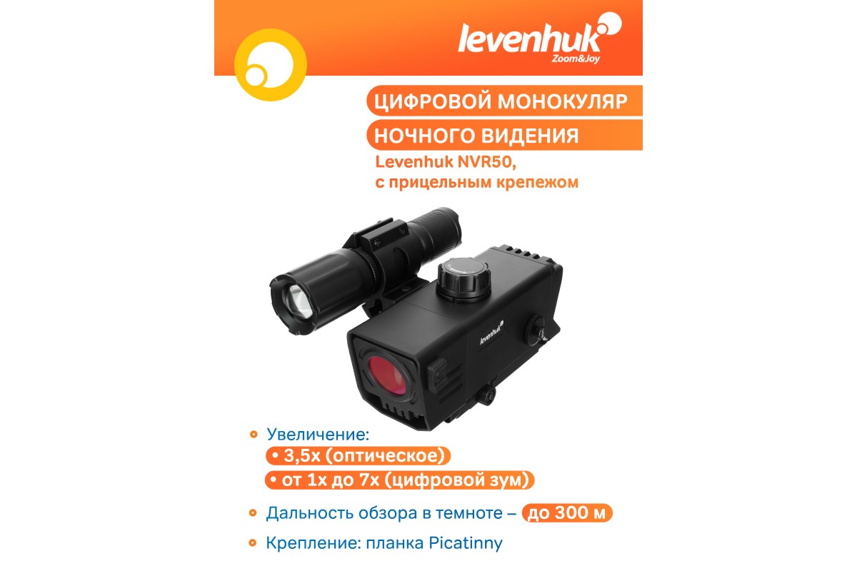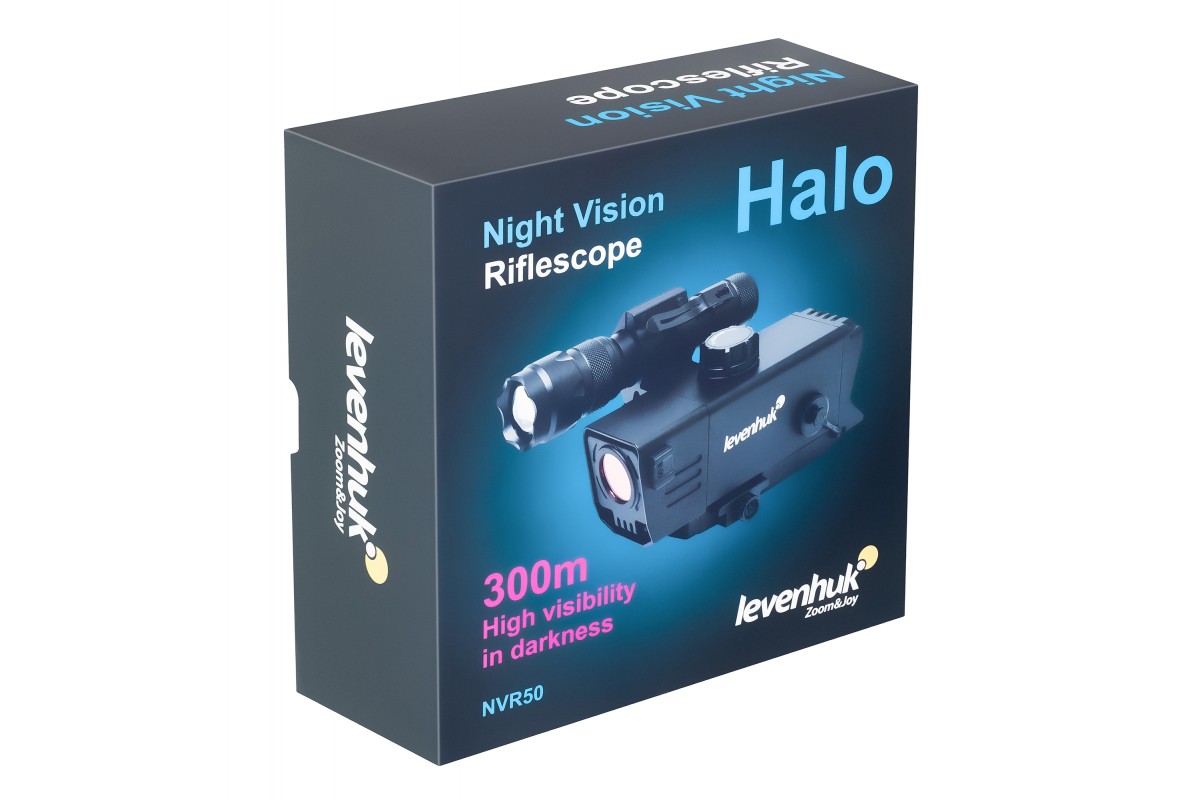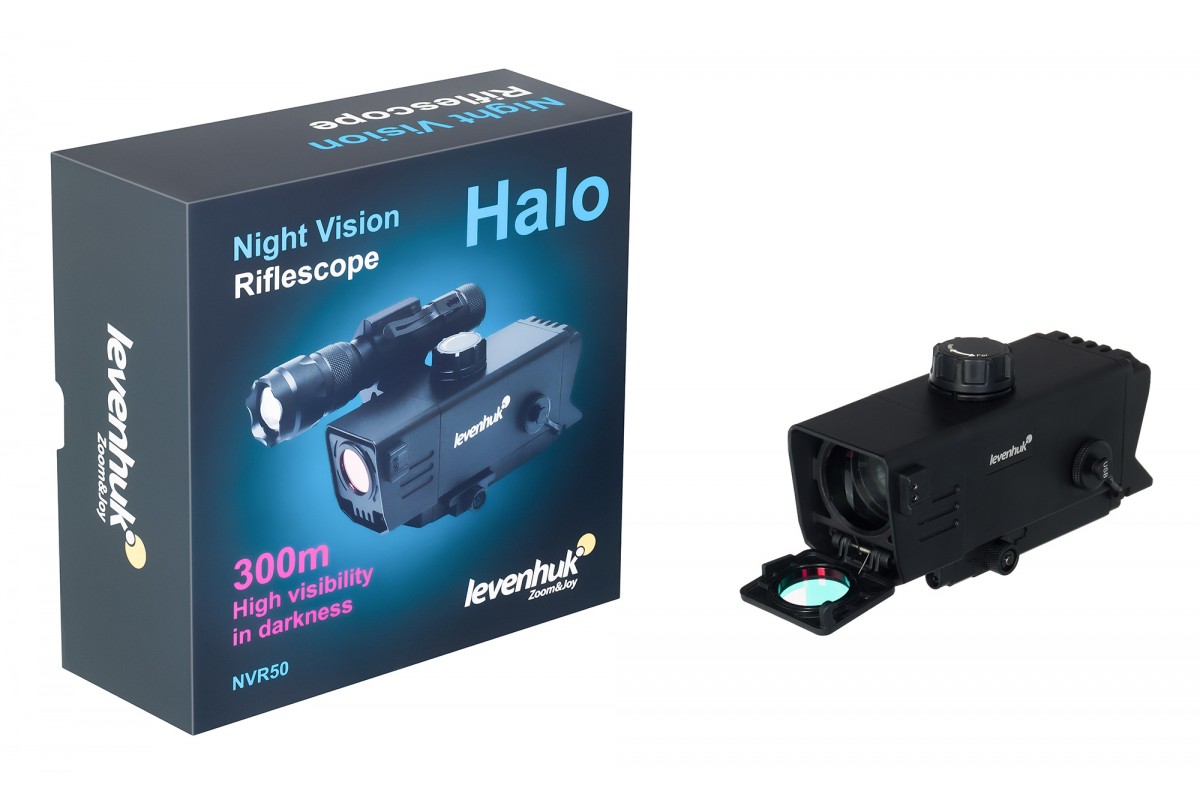 Levenhuk Halo NVR50 предназначен для ночной охоты. Благодаря чувствительному сенсору и ИК-подсветке он позволяет вести наблюдения и в полной темноте и сумерках с дальностью обзора до 300 метров. В дневное время его можно использовать как монокуляр с неограниченной дальностью обзора, оптическим и цифровым увеличением от 1х до 7х.