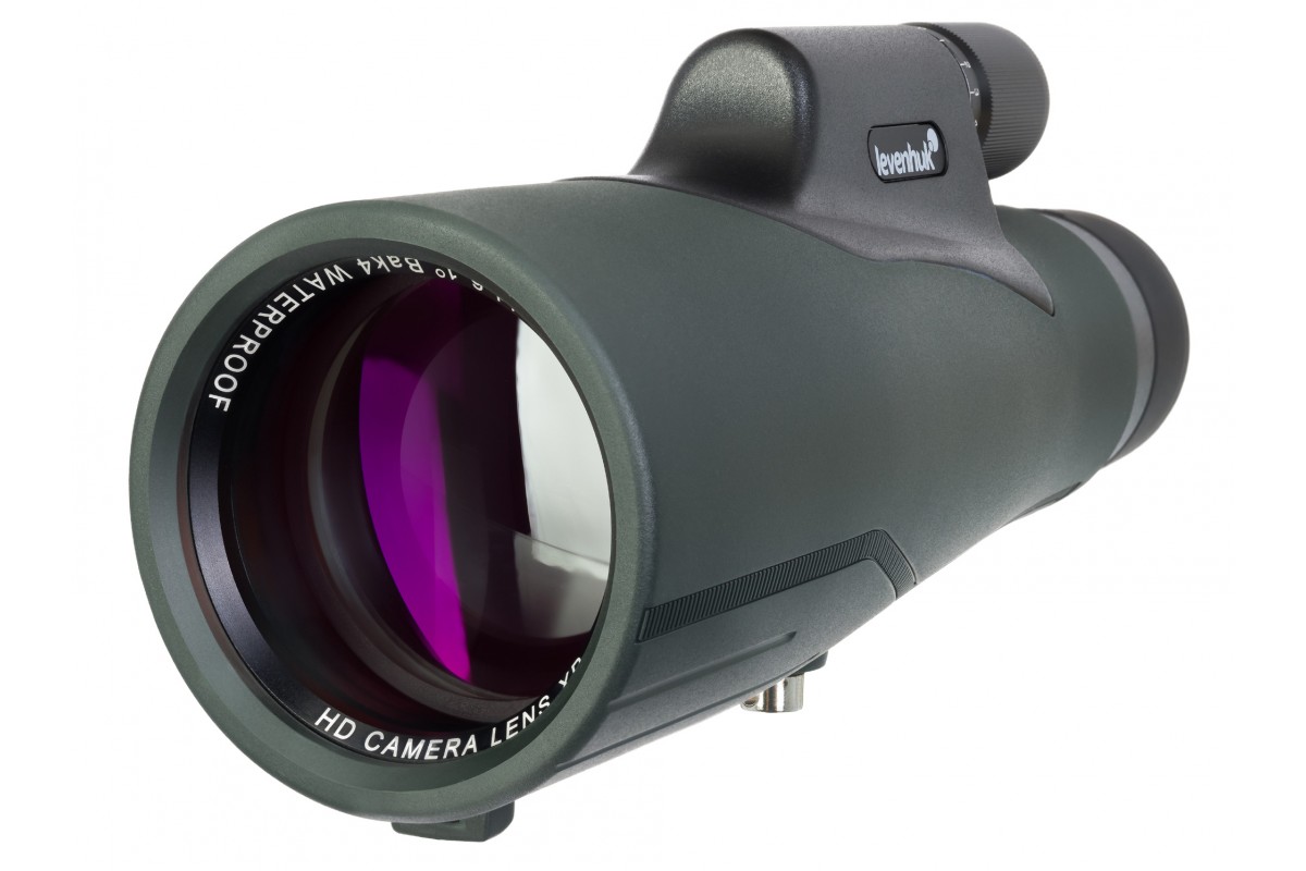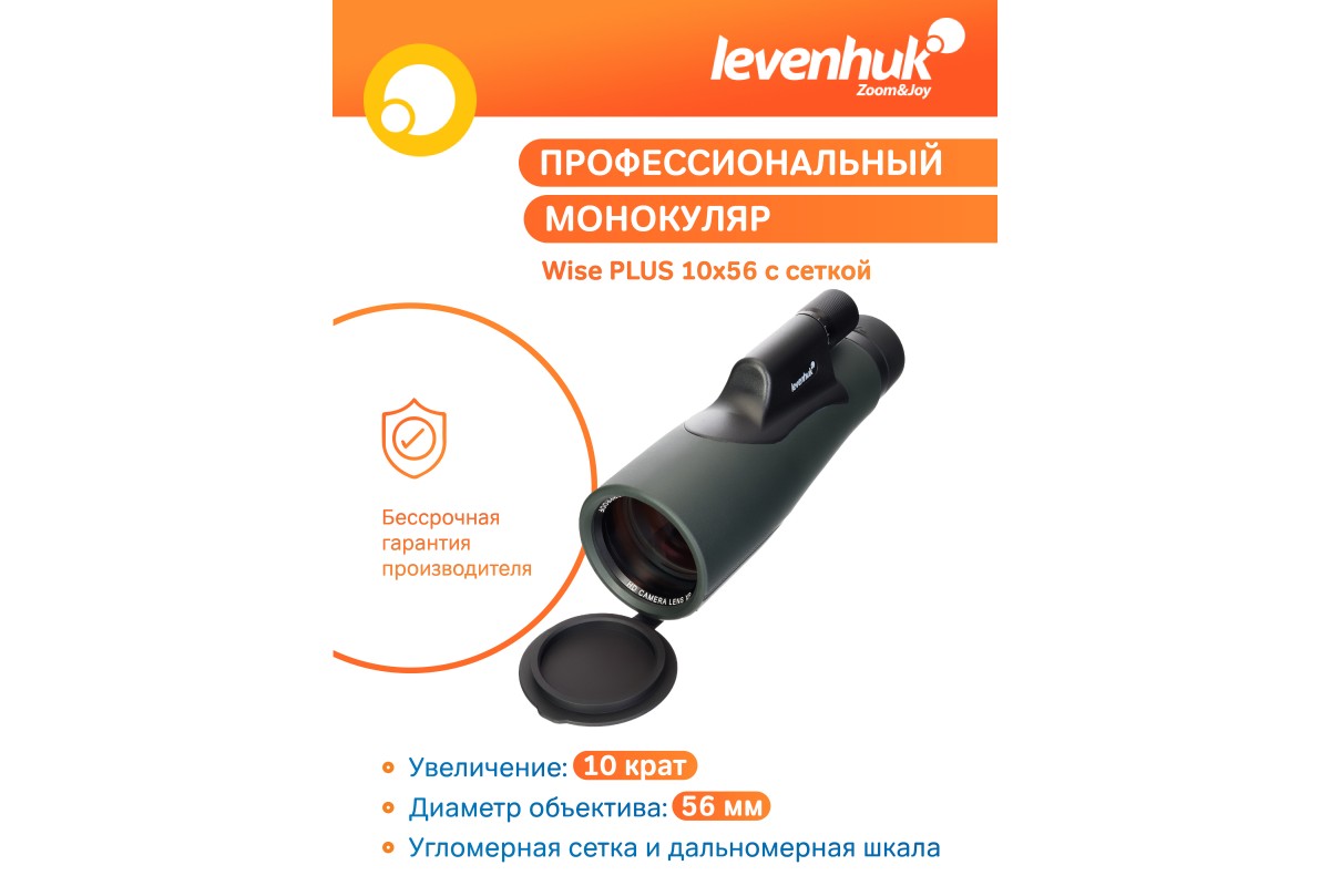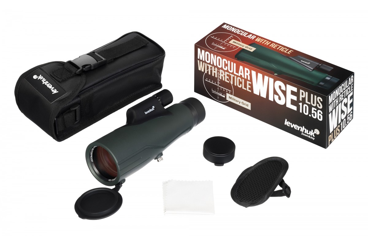 Levenhuk Wise PLUS 10x56 приближает объекты в 10 раз. Оптика обеспечивает передачу высококачественной картинки – этому способствует полное многократное просветление. В окуляре есть угломерная сетка и дальномерная шкала, которые можно применять для расчета расстояния до цели, ее высоты, горизонтальных и вертикальных углов. Монокуляр обладает долговечной конструкцией, обрезиненный корпус из ABS-пластика показывает отличную стойкость к механическим повреждениям. Работать с прибором комфортно: можно изменять положение наглазника, есть крепление для штатива со стандартной резьбой.