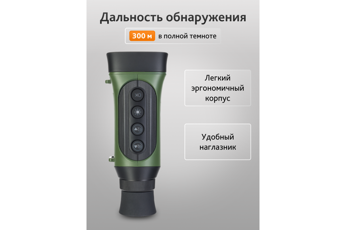 • Портативный прибор ночного видения, который легко держать одной рукой