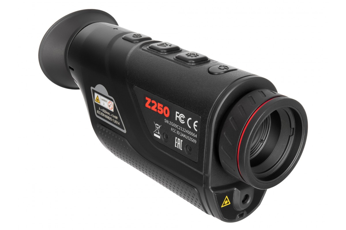 Разрешение микроболометра составляет 400x300 пикселей, есть возможность выбирать цветовую палитру во время наблюдений – менять профиль можно прямо «на ходу» нажатием на одну кнопку. Всего доступно 5 палитр. Монокуляр дает фиксированное оптическое увеличение в 2,4 крата, которое можно усилить цифровым зумом вплоть до уровня в 9,6 крата. Изменение кратности происходит дискретно, доступно три уровня. Тепловизор дополнен лазерным целеуказателем, который упрощает наведение на цель. Им можно «подсветить» объект, находящийся на расстоянии до 200 метров.