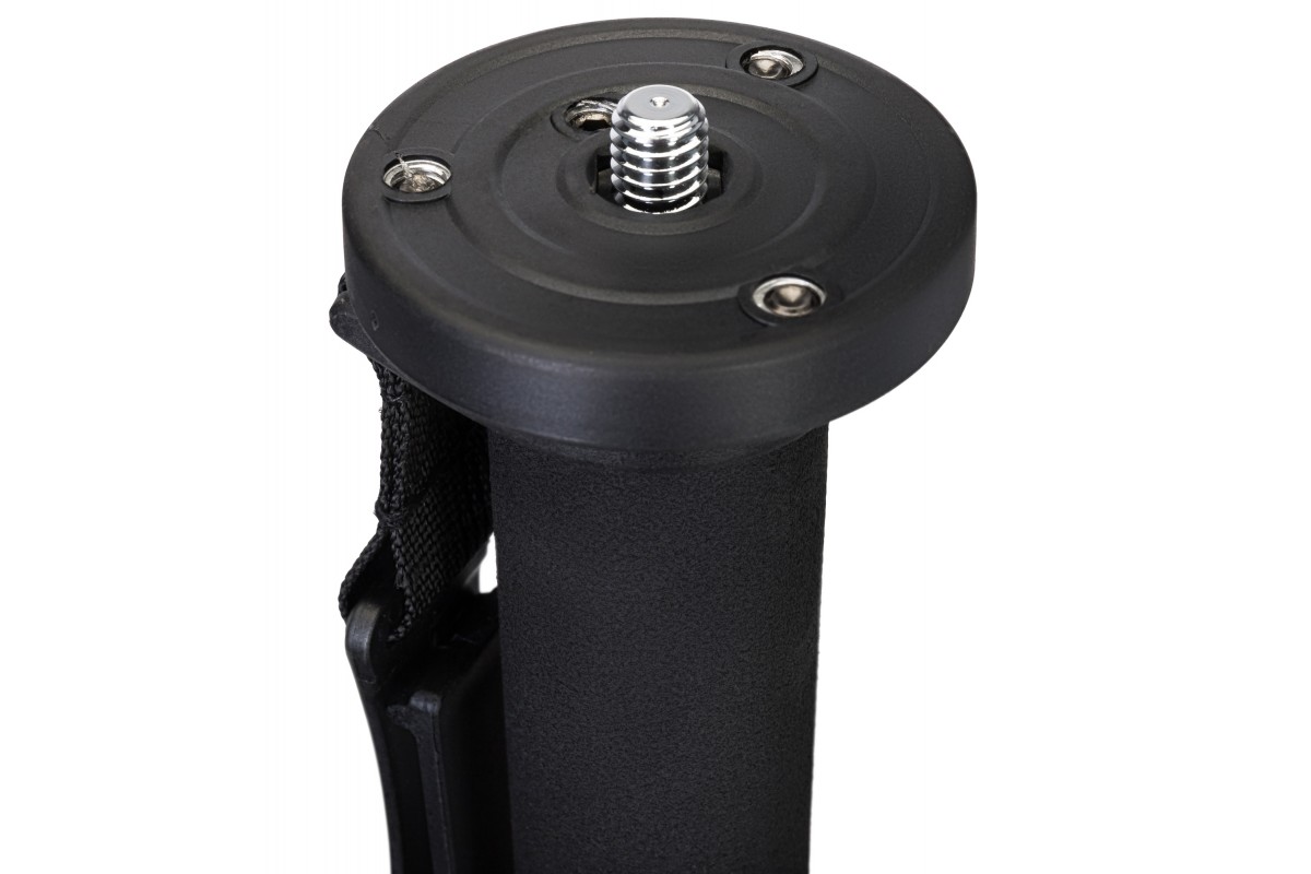 Levenhuk Level PLUS MP10 – это легкий и компактный ручной монопод для установки любой техники весом до 10 кг. У него две резьбы: 1/4 и 3/8 дюйма. Установочная площадка несъемная, но монтаж техники несложный и быстрый. Преимущество монопода в сравнении с классическим штативом в том, что он дарит пользователю мобильность. Это особенно ценно для фотографов, которые не хотят ограничивать себя кадрами из одной статичной точки. К тому же монопод стабилизирует картинку, мало весит и крайне удобен для путешествий.