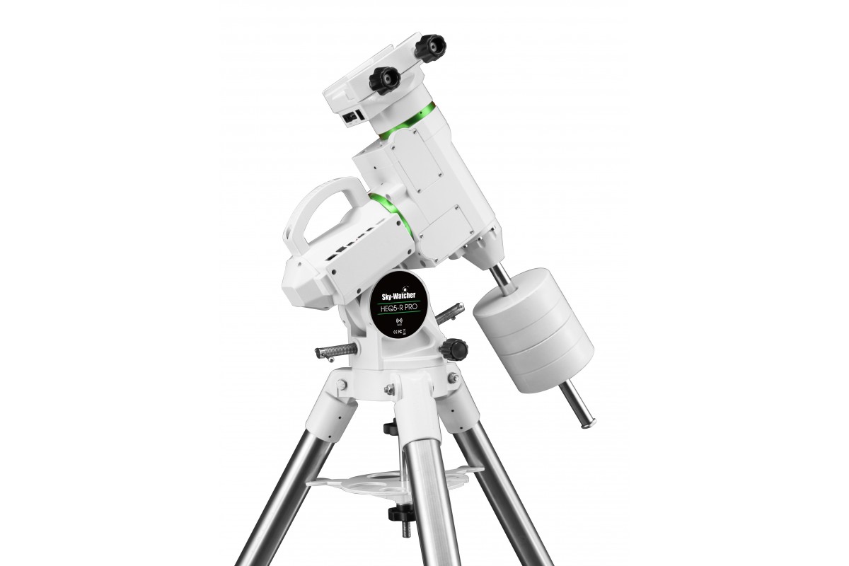 Экваториальная монтировка немецкого типа Sky-Watcher HEQ5-R PRO SynScan GOTO станет надежной основой для работы астрономов, увлеченных как визуальными наблюдениями, так и профессиональной астрофотографией. Ее конструкция, рассчитанная на суммарную нагрузку до 15 кг при собственном общем весе 12 кг, позволяет работать с тяжелыми оптическими трубами и дополнительным оборудованием, таким как зеркальные камеры, автогиды и различные периферийные устройства. Для удобства балансировки системы при использовании увесистых ОТА в комплект уже включены 2 противовеса по 5,3 кг каждый – они помогут защитить механические компоненты и мотор от люфтов и преждевременного износа, а также уравновесят телескоп вокруг оси R.A.